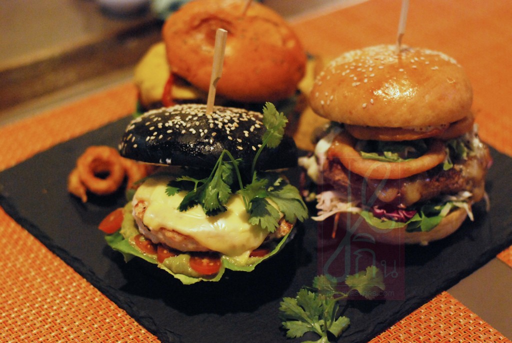ในส่วนของแฮมเบอร์เกอร์ที่จะแนะนำวันนี้นั้นจะมี 3 ตัวคือ แฮมเบอร์เกอร์เนื้อวัว แกะ และไก่ (350++ บาท) โดยแต่ละเมนุจะเสริฟพร้อม เครื่องเคียงเป็น เฟรนซ์ฟราย เคอรี่ฟราย หรือ นาโช่ชิพ (เคอรี่ฟรายที่นี่ มีรสชาตอร่อยมาก)