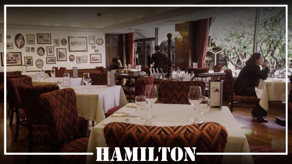 ร้านอาหาร Hamilton’s Steak House เป็นร้านอาหารในสไตล์ American Steak House ที่มีการตกแต่งในแนว contemporary American ให้บรรยากาศที่ดูหรูหรา มีภาพประกอบความทรงจำ เหมือนเข้าไปอยู่ในบ้านพักชาวอเมริกันที่หรูหรา สวยงาม