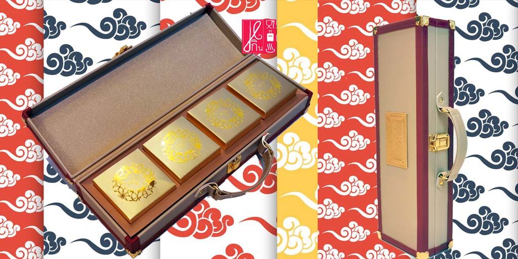 - Imperial Red กล่องหนังสีแดงทองลายพระจันทร์มงคล บรรจุขนมไหว้พระจันทร์ 4 ชิ้น จำหน่ายในราคาสุทธิ 888 บาท