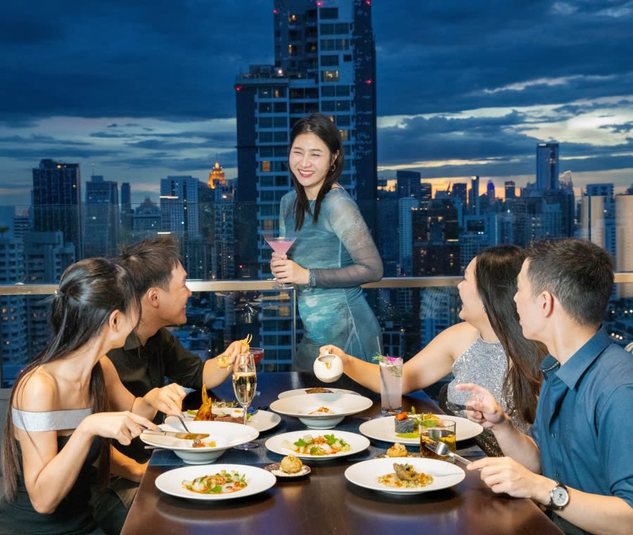 สำหรับผู้ชื่นชอบทิวทัศน์เมืองหลวงยามค่ำคืน ห้องอาหารนิมิตรชั้น 27 เป็นตัวเลือกที่สมบูรณ์แบบ ทีมเชฟนำเสนอเซทเมนูอาหารไทยร่วมสมัย 5 คอร์ส ปรุงจากวัตถุดิบคุณภาพดี สมุนไพรและเครื่องเทศท้องถิ่น ชูรสชาติอาหารไทยแท้ พร้อมการแสดงดนตรีสด และกิจกรรมนับถอยหลังส่งท้ายปี