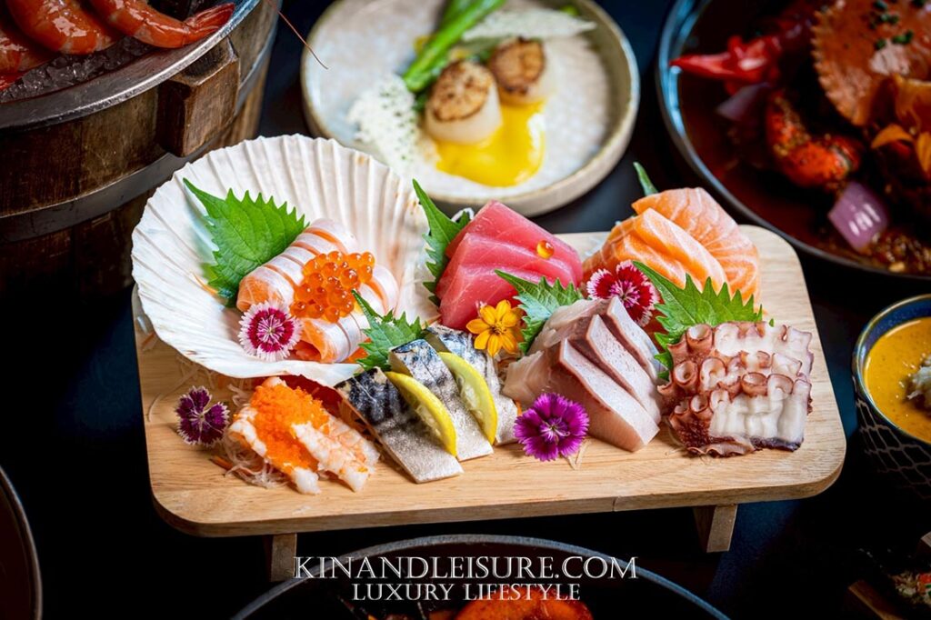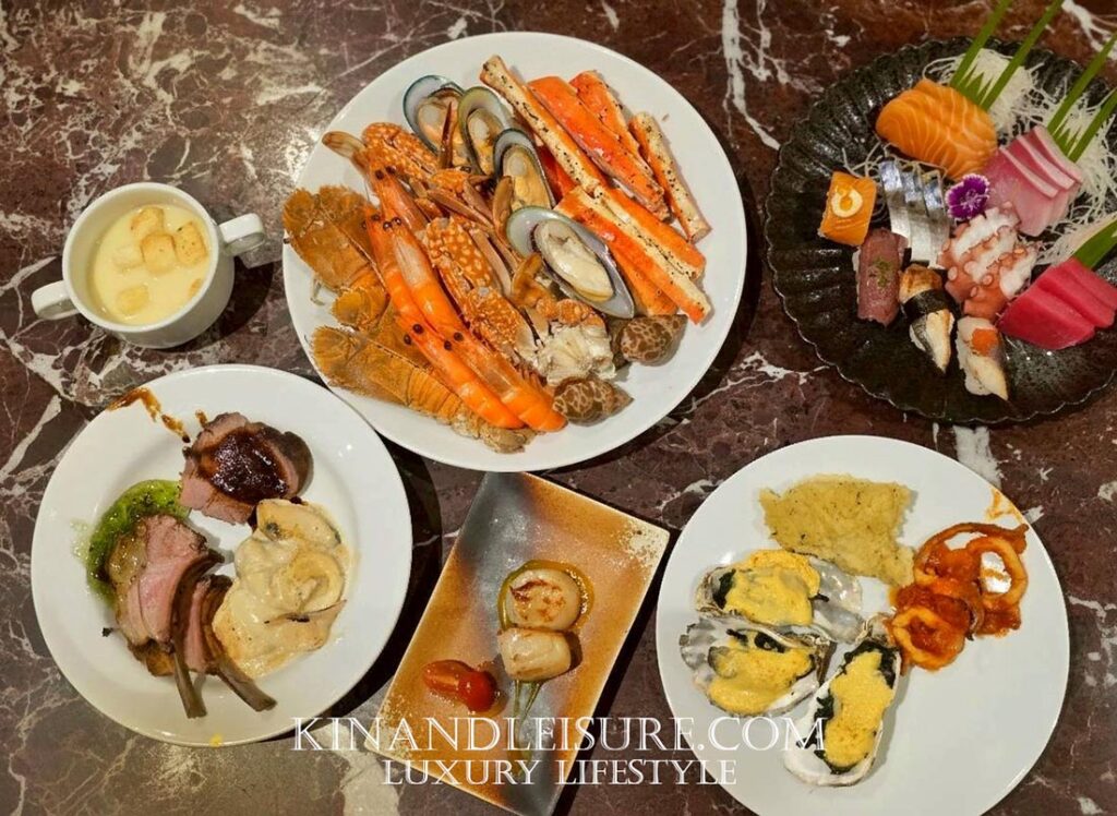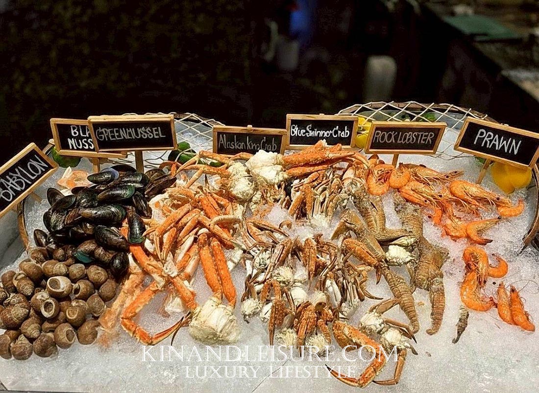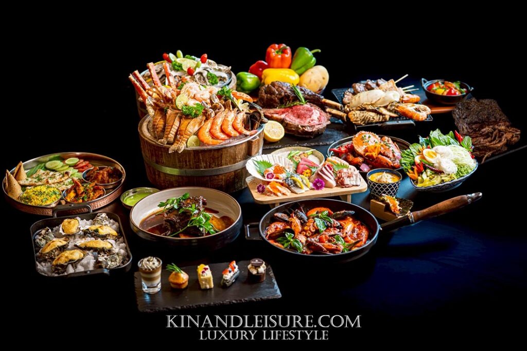 เริ่มต้นด้วยซีฟู้ดออนไอซ์สุดอลังการ ไม่ว่าจะเป็นปูอลาสก้าคิงแครบ กุ้งแม่น้ำ ล็อบสเตอร์ กั้ง และหอยนานาชนิด ทั้ง หอยนางรมฟินเดอแคลร์ (Fine de Claire) หอยนางรมนอร์มังดี (Normandy) และหอยนางรมเกาหลี พร้อมด้วยสเตชั่นอาหารญี่ปุ่นสดใหม่ ที่เสิร์ฟซูชิและซาชิมิเกรดพรีเมียม ทั้งแซลมอน ทูน่า ฮามาจิ และวากิว นิกิริ เพลิดเพลินกับมุมเนื้ออบและกริลล์แบบสดใหม่ ที่นำเสนอเนื้อพรีเมียมอย่าง เนื้อไพร์มริบออสเตรเลีย เนื้อวากิวบริสเก็ต รมควันสไตล์เท็กซัส ขาแกะอบ แซลมอนนอร์เวย์ และหอยเชลล์อเมริกาย่างเสิร์ฟร้อน