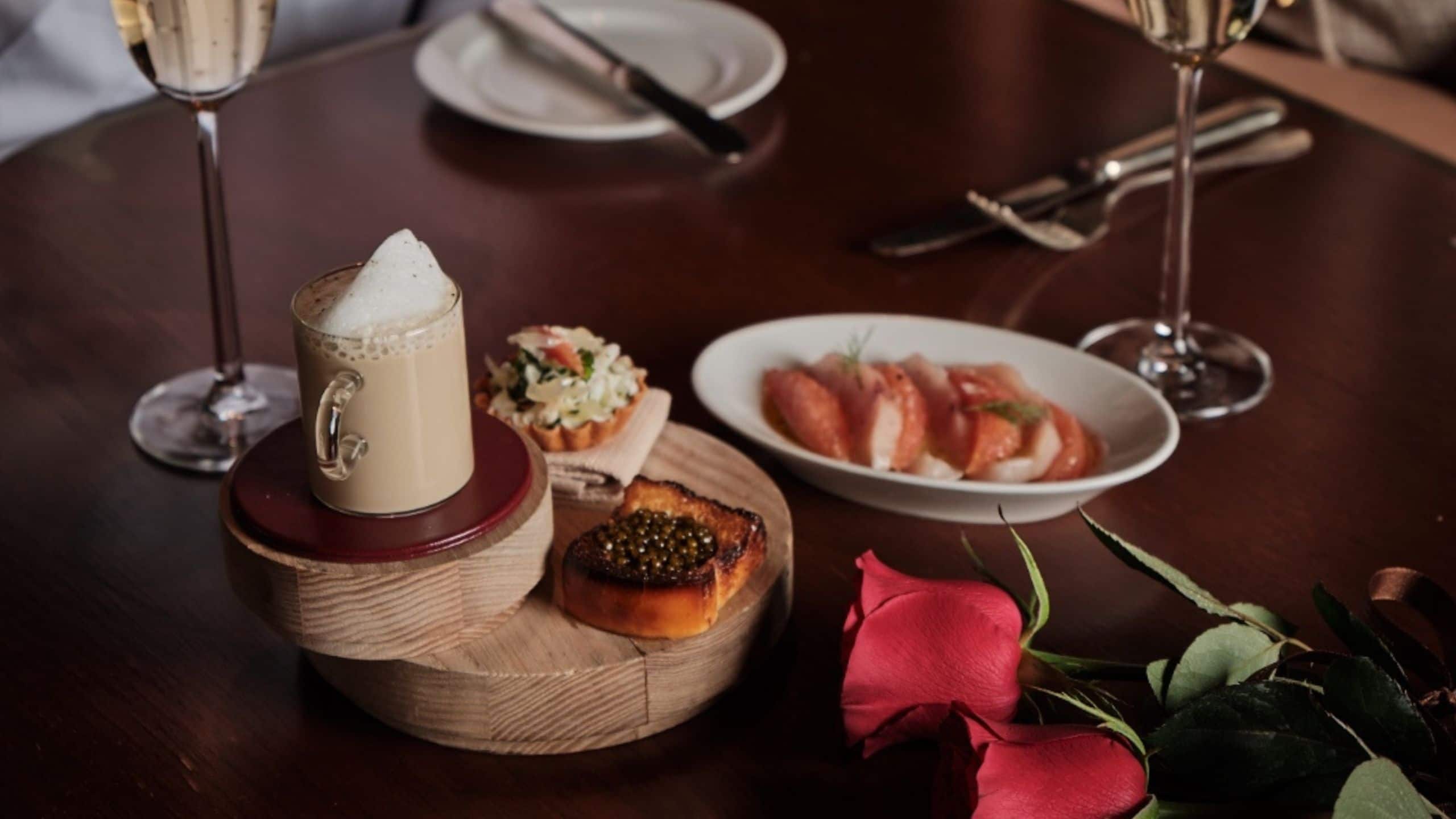 ในวันที่ ๑๔ กุมภาพันธ์นี้ ขอเชิญท่านมาลิ้มลองเครื่องเสวยห้าคอร์สที่คัดสรรจากวัตถุดิบชั้นเลิศและปรุงอย่างพิถีพิถัน ในราคาประเดิมที่ ๔,๒๐๐ บาทต่อหนึ่งท่าน (ยังไม่รวมภาษีและค่าธรรมเนียม) โดยมีสำรับเอก อาทิ หอยนางรมสดเสิร์ฟพร้อมเกล็ดหิมะทับทิม, หอยเชลล์จากเกาะฮอกไกโดโรยด้วยไข่ปลาคาเวียร์ และเนื้อวากิวส่วนสันนอกย่างด้วยถ่านไม้สำหรับรับประทานร่วมกัน ก่อนจะปิดท้ายด้วยของหวานและขนมชิ้นเล็กชิ้นน้อยตามธรรมเนียม