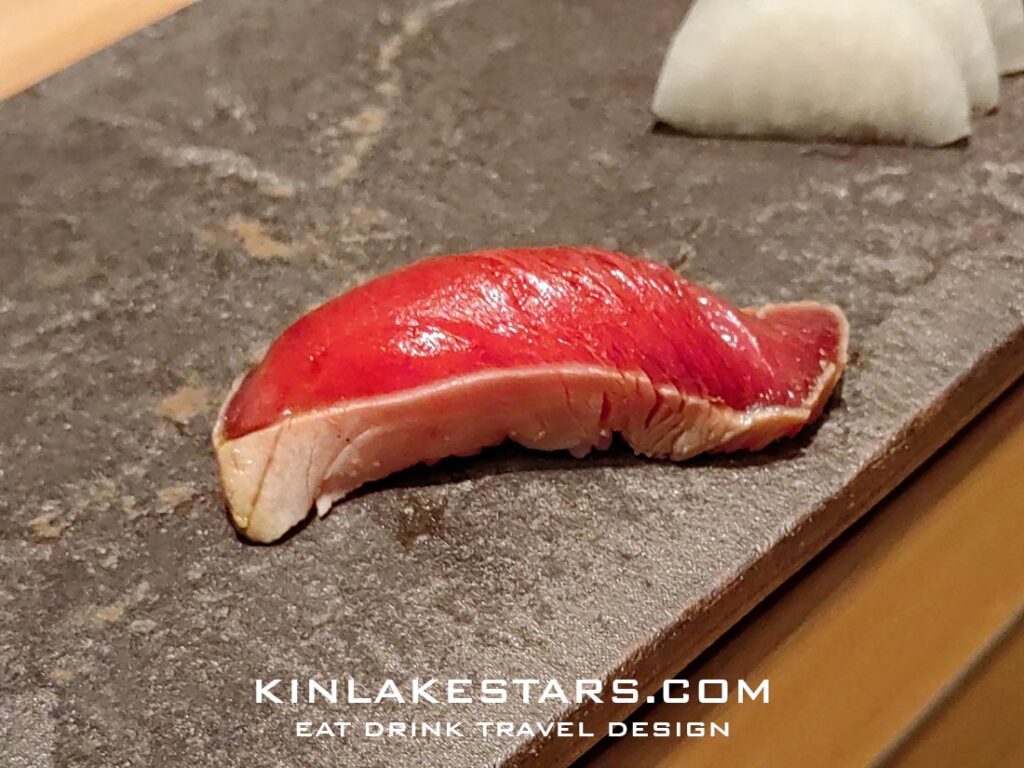 ชิ้นนี้อร่อยเหาะมากๆ มาพร้อมกับสีสันแดงสดสวยสะดุดตา อากามิ จะเป็นส่วนของเนื้อปลาที่มีลักษณะ สีแดงสด ไขมันน้อย หรือ อาจจะไม่มีไขมันอยู่เลย อยู่ในส่วนท้องปลาย ๆ ใกล้แถวหาง สามารถหาได้ง่าย และมีราคาที่ไม่แพง โดยเนื้ออากามิ จะมีรสชาตินุ่มและเนื้อที่แน่น นิยมย่างเพื่อ มาทำเมนูต่าง ๆ เช่น ข้าวหน้าปลาดิบ เป็นต้น นอกจากนี้ ส่วนที่มีลักษณะเนื้อแดง ในปลาชนิดอื่น ๆ นอกจากโอโทโร่ เช่น ปลาซันมะ ปลาโอ ปลาซาบะ ก็นับว่าเป็นอากามิ ได้เช่นเดียวกัน