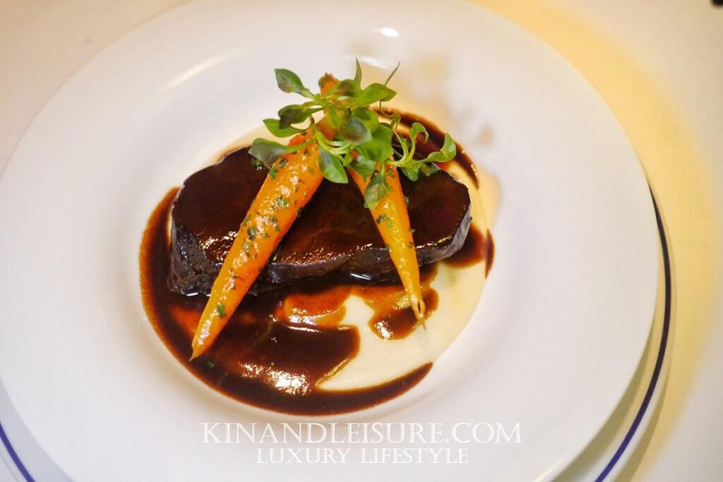 อีกจานขอแนะนำต้องไม่พลาดเมื่อมาเยือนครับ เป็น beef cheek หรือ แก้มวัวตุ๋น ซึ่งขายดีมากก่อนหน้านี้ และ เมนูพิเศษที่ไม่ได้เขียนในเมูหลักแต่ยังสั่งได้ครับ เนื้อแก้มวัวตุ๋นจะเสิร์ฟมาแบบชิ้นโตในซอสรสเข้มข้น ตัวแก้มวัวตุ๋นมาได้นุ่มมาก ซอสก็รสชาติของเนื้อเข้มข้น อาจจะแรงสำหรับคนที่ไม่ชอบเนื้อ แต่คนที่รักเนื้อจะชอบจานนี้มาก ๆ ครับ แนะนำเลย