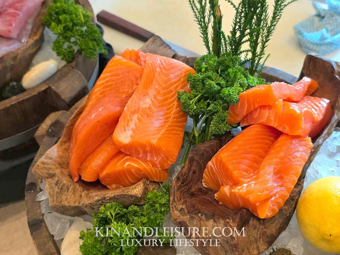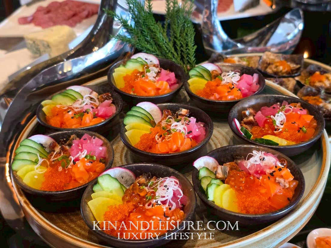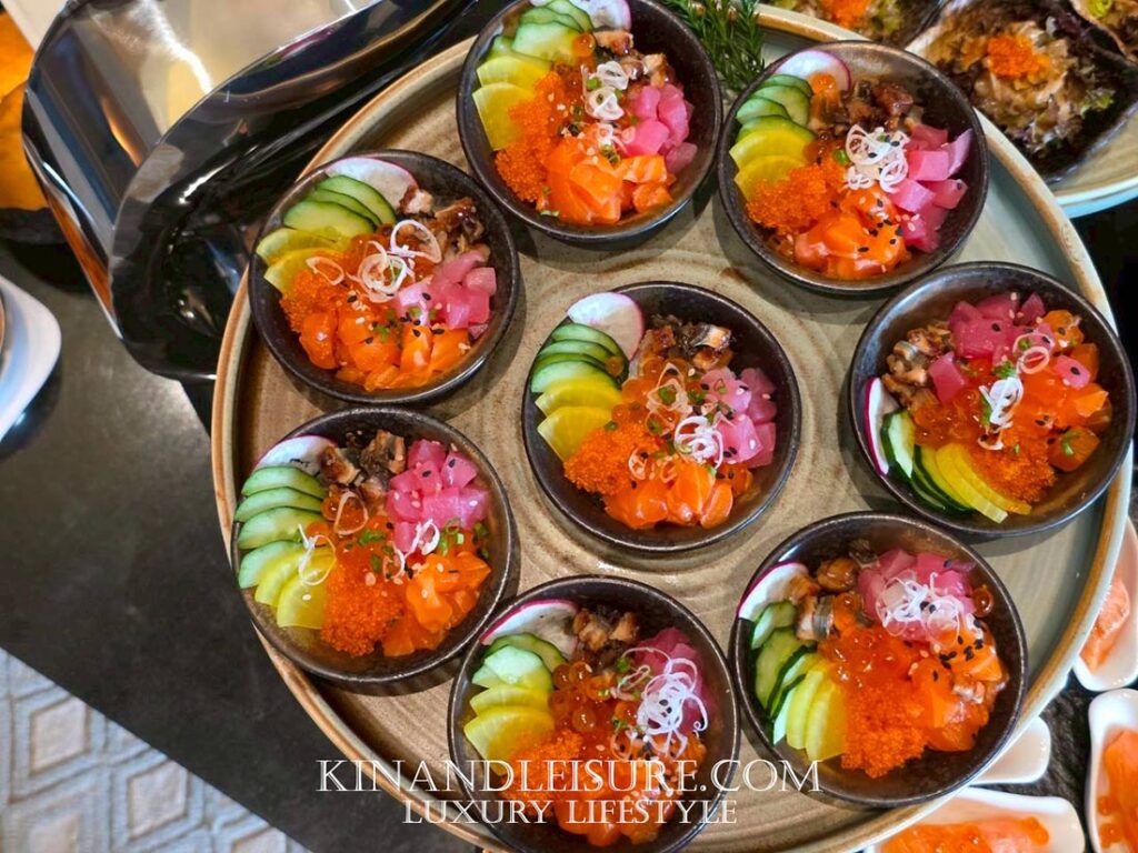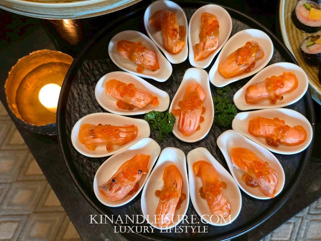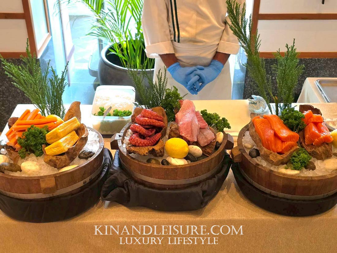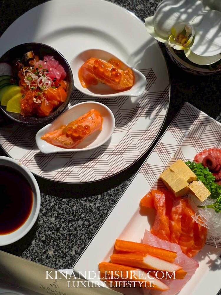 เมื่อเดินผ่านไลน์ขนมหวานที่หอมอบอวล คุณจะสะดุดตากับความสงบนิ่งและประณีตของมุมอาหารญี่ปุ่นครับ พีทต้องบอกว่าการแทรกอาหารญี่ปุ่นเข้ามาใน Chocolate Buffet คือความชาญฉลาด เพราะรสสัมผัสที่สดชื่น (Refreshing) และความอูมามิของปลาสด คือตัวช่วยชั้นเลิศที่ช่วย “Reset” ลิ้นของเราให้พร้อมรับความเข้มข้นของโกโก้ในคำต่อไปได้อย่างไม่มีเบื่อ