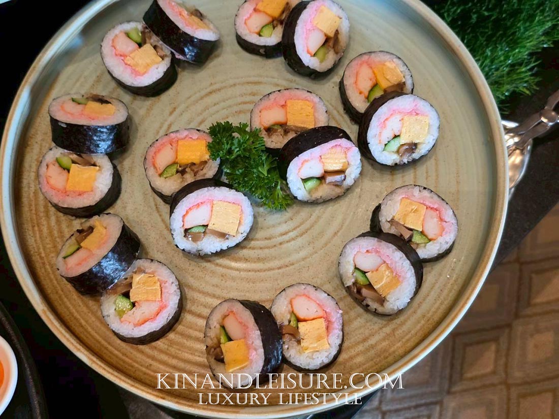 - การนำเสนอ: จัดวางเรียงรายบนถาดหินชนวนสีดำสนิท ทำให้สีสันของไส้โรลดูโดดเด่นและดูหรูหราแบบโมเดิร์น