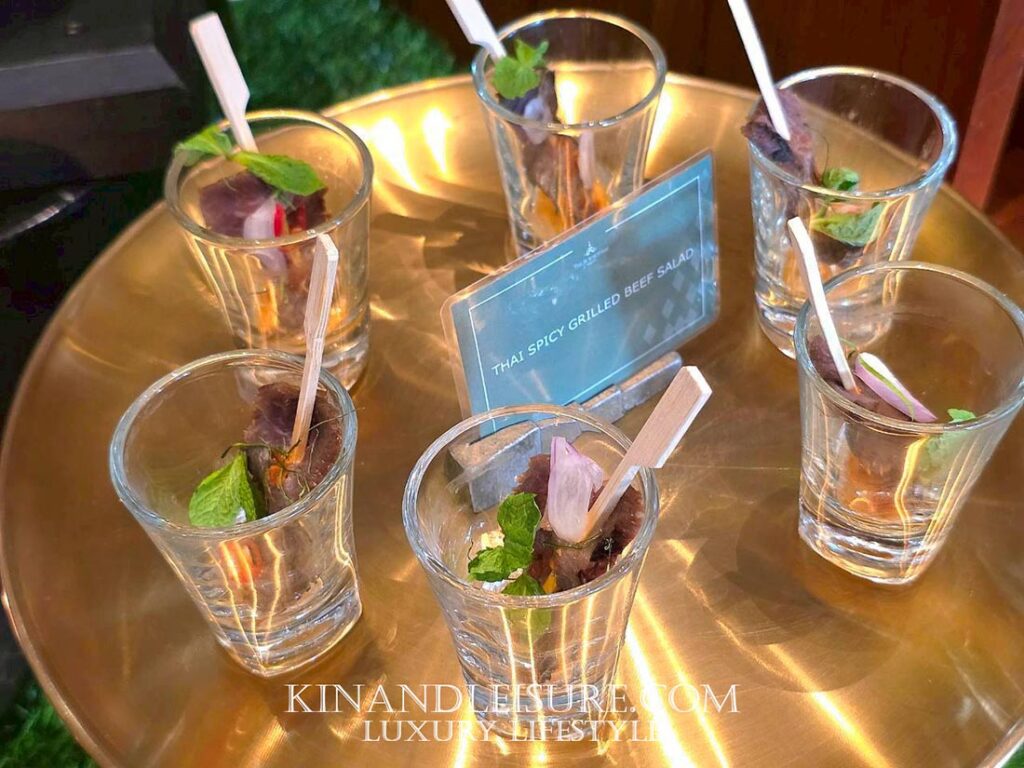ยำเนื้อย่างเมนูนี้ พีทขอเรียกว่าเป็น “ศิลปะในแก้วช็อต” ครับ เชฟเลือกใช้เนื้อวัวส่วนที่นุ่มที่สุด นำไปย่างแบบ Medium Rare จนผิวนอกหอมกลิ่นย่างถ่านแต่ด้านในยังสีชมพูสวย คลุกเคล้าด้วยน้ำยำรสจัดจ้านครบสามรส เปรี้ยว เค็ม หวาน และมีความเผ็ดติดปลายลิ้นเบาๆ กลิ่นหอมของหอมแดงสไลด์และสะระแหน่ช่วยชูโรงให้เนื้อวัวโดดเด่นขึ้นมา การนำเสนอในแก้วใบเล็กดูสะอาดตาและรับประทานง่าย เป็นการยกระดับอาหารไทย Street Food ให้ดูหรูหราและทรงคุณค่า (Sophisticated Thai Cuisine) อย่างแท้จริง