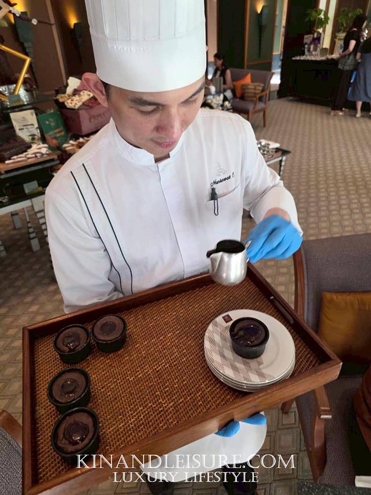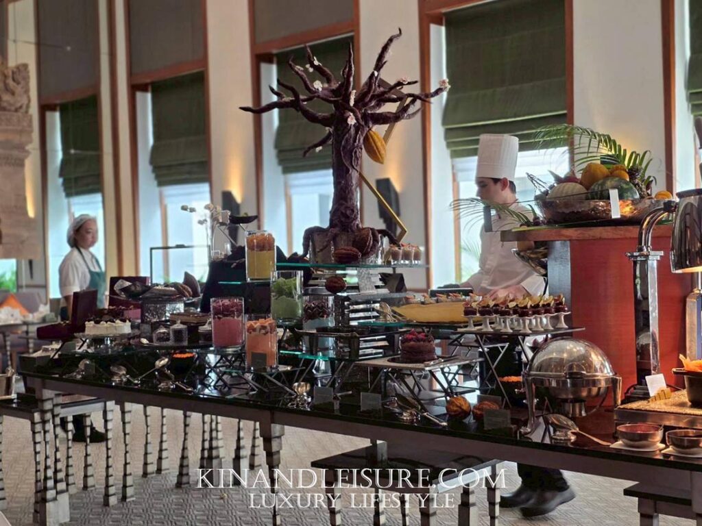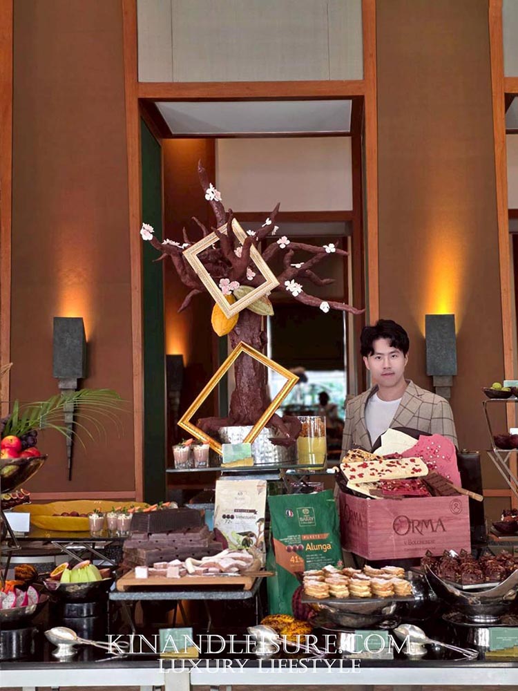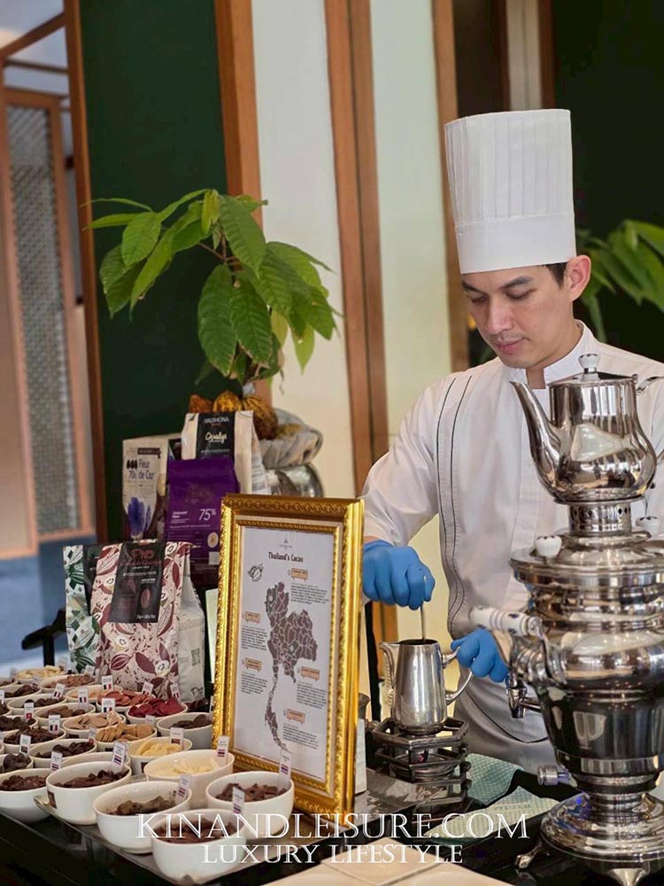มื้อนี้ไม่ใช่เพียงการทานบุฟเฟ่ต์ขนมหวานทั่วไป แต่มันคือการ “Treat yourself to a world of over 100 chocolate varieties” ที่นี่คือดินแดนที่คุณสามารถสร้างสรรค์เครื่องดื่มช็อกโกแลตในอุดมคติผ่านการชี้แนะของเชฟผู้เชี่ยวชาญ (Expertly Crafted Just for You) ท่ามกลางเสียงบรรเลงขิมสดที่ขับกล่อมให้บรรยากาศนุ่มนวลชวนฝัน