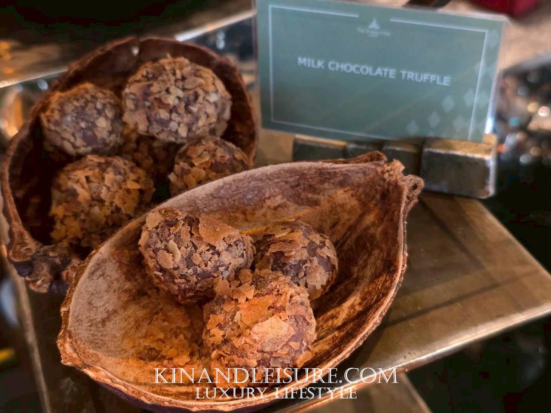 5. เคล็ดลับความอร่อยแบบ ‘The Sukhothai’: สิ่งที่ทำให้ทรัฟเฟิลที่นี่โดดเด่น คือ “Texture Contrast” ครับ ผิวนอกจะมีความกรอบบางๆ (Thin Shell) ที่เกิดจากการ Tempering ช็อกโกแลตอย่างแม่นยำ เมื่อฟันเรากดผ่านเปลือกบางๆ นั้นเข้าไป จะเจอกับเนื้อกานาชที่มีความเหลวและเนียนนุ่มอยู่ข้างใน เป็นมิติการทานที่สนุกและน่าประทับใจทุกคำ