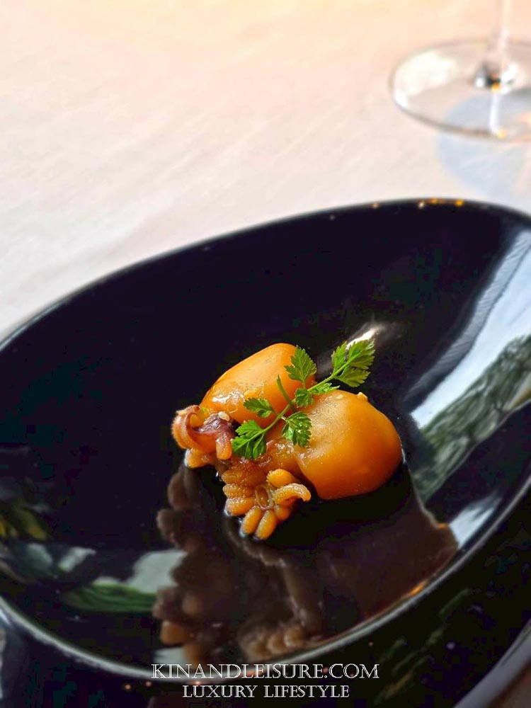 การทานจานนี้ เชฟแนะนำให้ท่านเริ่ม “ไต่ระดับรสชาติ” จากความบริสุทธิ์ของท้องทะเลไปสู่ความลุ่มลึกของพสุธาครับ