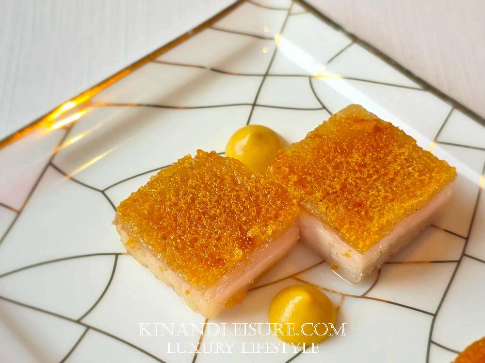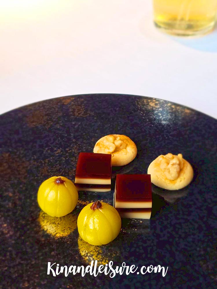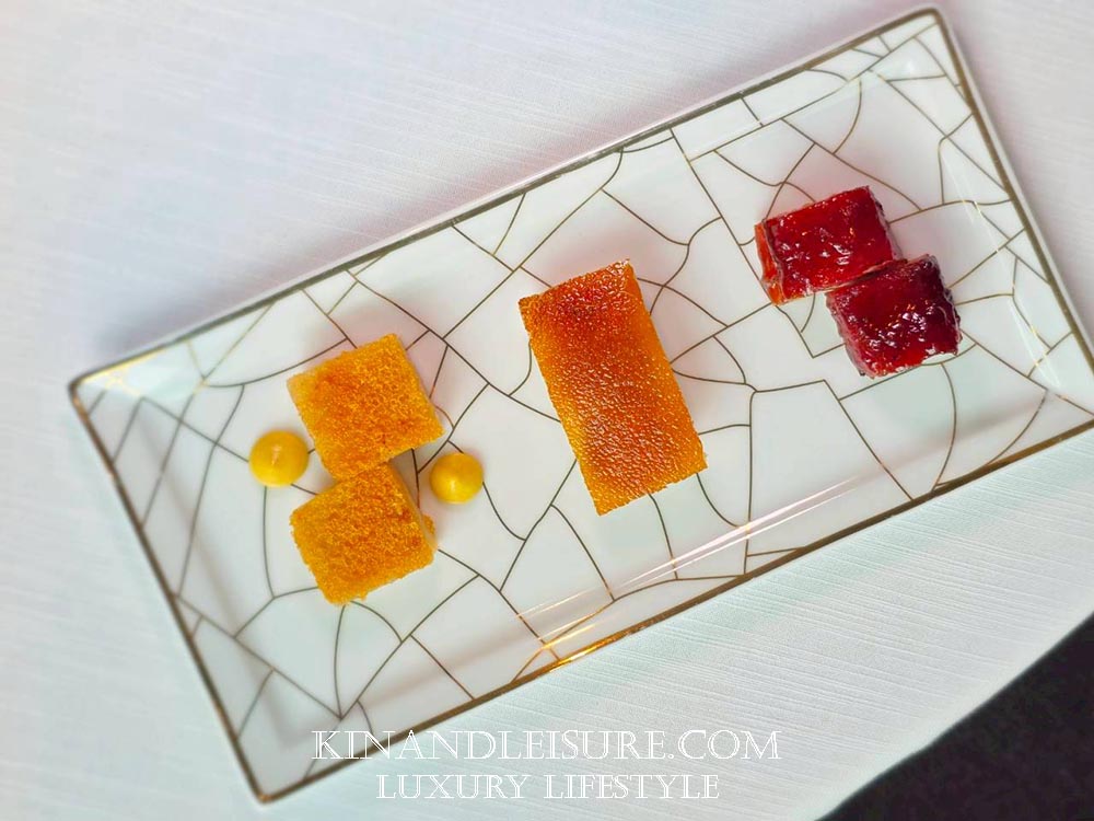 ธรรมเนียมการเสิร์ฟ Petite Fours ของที่นี่คือการสะท้อนถึงวัฒนธรรมการดื่มชาและการทานขนมมงคลของจีน โดยในเซต Lunch นี้ เชฟได้รังสรรค์มาถึง 3 รูปแบบที่มีเนื้อสัมผัสต่างกันโดยสิ้นเชิง