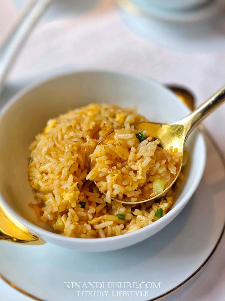จานปิดท้ายที่โชว์ทักษะการคุมไฟอันยอดเยี่ยมพิสูจน์ฝีมือของเซฟในห้องอาหารจีน ข้าวทุกเม็ดถูกผัดหอมกลิ่นกระทะ (Wok Hei) เคลือบด้วยซอสอย่างทั่วถึงสม่ำเสมอ เป็นการปิดจบเมนูคาวได้อย่างสมบูรณ์แบบ