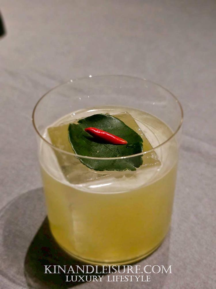 ค็อกเทลที่ท้าทายที่สุดด้วยการนำเปลือกกุ้งแม่น้ำย่างมา Infused ใน Finlandia Vodka ผสานเครื่องต้มยำครบเครื่องอย่าง ข่า ตะไคร้ ใบมะกรูด และเพิ่มมิติด้วยน้ำปลา ตกแต่งอย่างมินิมอลด้วยใบมะกรูดและพริกแดงเม็ดเล็กบนก้อนน้ำแข็งเหลี่ยมใส มอบรสชาติที่เผ็ดร้อน เปรี้ยว และนัวอย่างไม่น่าเชื่อ