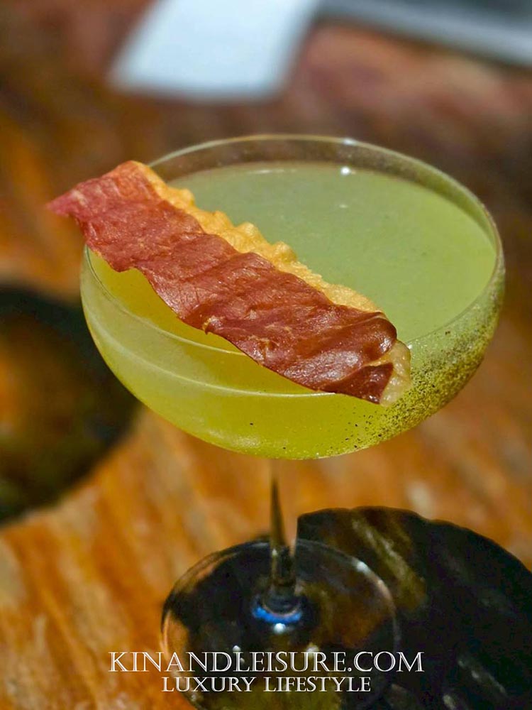 การนำรสชาติลาบหมูมาไว้ในแก้วด้วย Finlandia Vodka ผสานมินต์ หอมแดง ผักชี และข้าวคั่วที่ให้กลิ่นหอมเฉพาะตัว ตกแต่งด้วย Serrano Ham แผ่นบางบนปากแก้ว มอบสัมผัส Savory ที่แปลกใหม่และสดชื่น