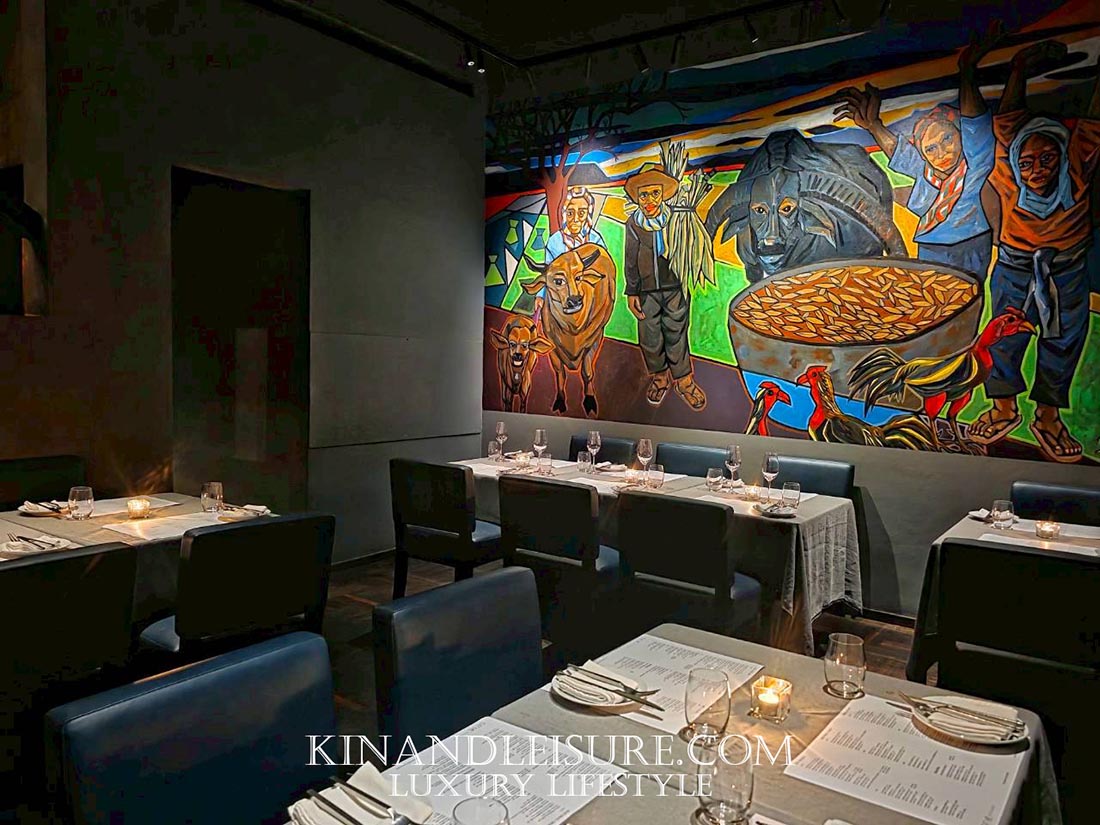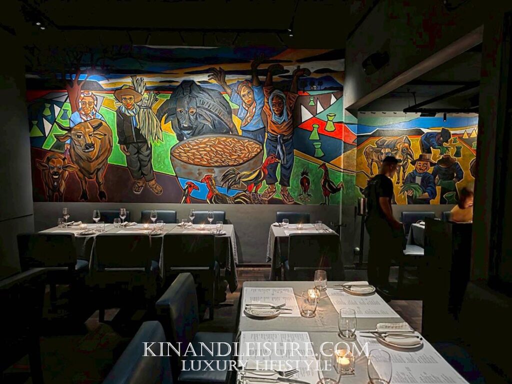 - The Murals & Art: จิตวิญญาณบนฝาผนัง ไฮไลท์ที่ไม่พูดถึงไม่ได้คือภาพวาดฝาผนังขนาดใหญ่ (Mural Art) ที่ถ่ายทอดวิถีชีวิตเกษตรกรรมและเกษตรกรไทยด้วยลายเส้นที่มีสีสันสดใสและทรงพลัง ภาพเหล่านี้ไม่ได้เป็นเพียงของตกแต่ง แต่ช่วยสร้างบทสนทนาระหว่างมื้ออาหาร และสะท้อนถึงการให้เกียรติวัตถุดิบจากท้องถิ่นซึ่งเป็นหัวใจหลักของทางร้าน