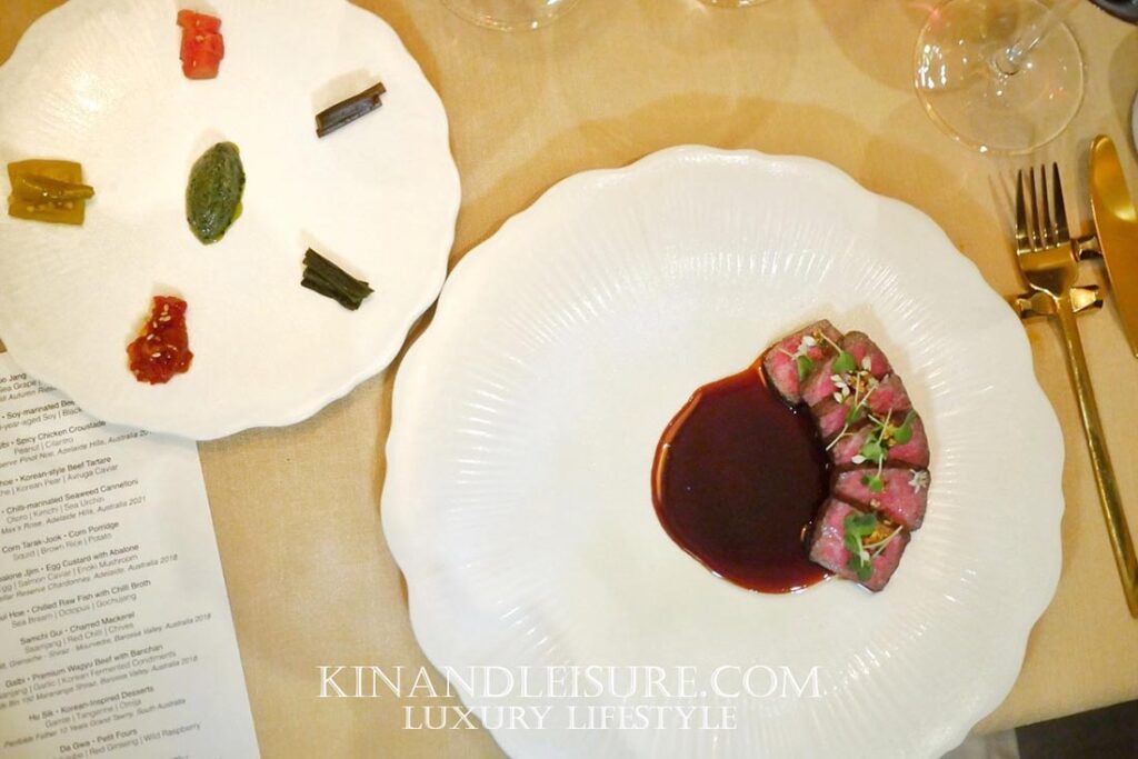 Theme ของคอร์สเมนูของ Edward Kwon จะเป็น modern Korean ซึ่งจะจัดเป็น 12 course ร่วมกับ wine pairing จากแบรนด์ Penfolds ซึ่ง Sommelier แนะนำว่าเป็น wine ที่จะไม่กลบรสชาติอาหารเกาหลี