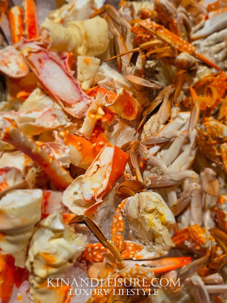 ราชันปูอลาสก้าขาแดงเด่น เห็นหนามแหลมประดับกายให้เกรงขาม กะเทาะเปลือกเผยเนื้อขาวราวนุ่นงาม รสหวานล้ำฉ่ำยวนใจเป็นที่สุด กลิ่นทะเลนวลหอมพรั่งพรูออก สัมผัสเนื้อเป็นเส้นใยละเมียดละไม เคียงคู่ปูม้าสดใสลายสีฟ้า เนื้อละเอียดดั่งสำลีแสนบริสุทธิ์ ปรุงด้วยไอความร้อนพอเหมาะเหม็ง รสเค็มหวานธรรมชาติฟุ้งกระจายในปาก