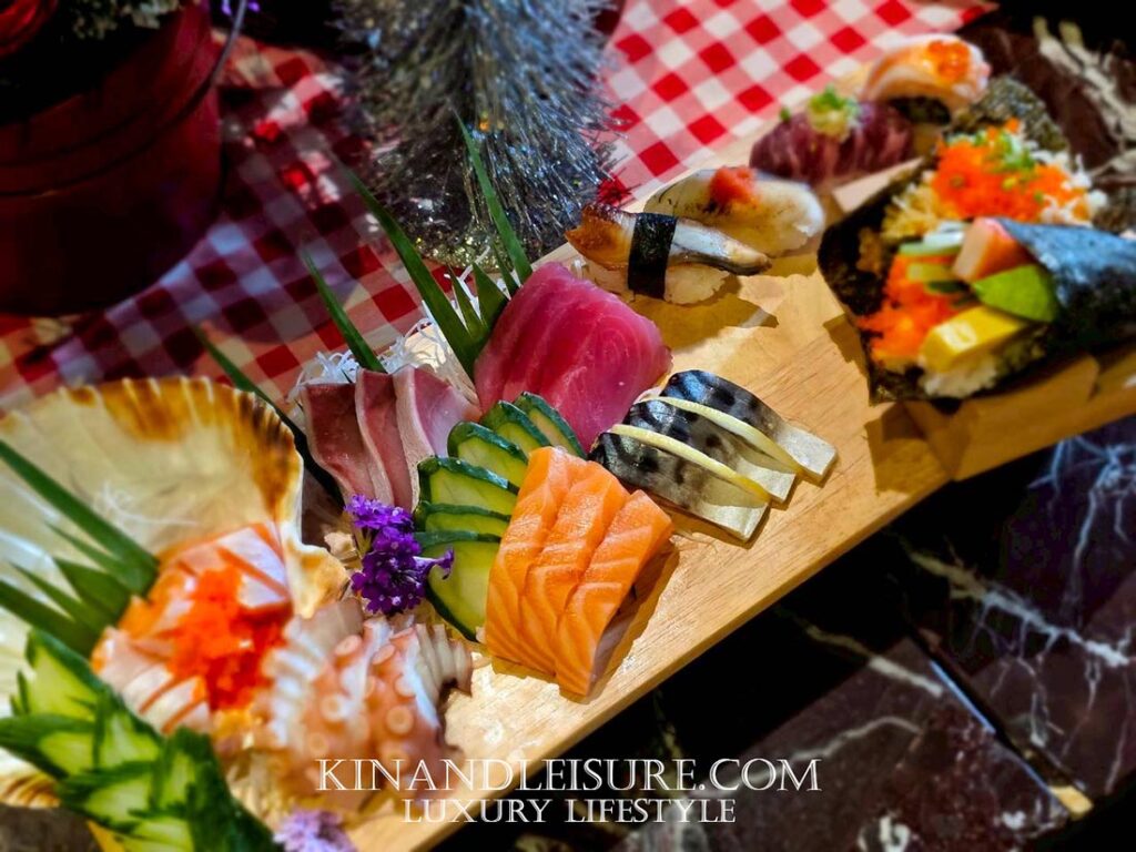 เริ่มที่ถาดรวมมิตรพิจิตรศิลป์ ชิ้นปลามินสดสะอาดชาติอาหาร ส้มละมุนนวลนุ่มนวลเนื้อปลาแซลมอน ทูน่าแดงเด้งรับกับเพดานลิ้น กลิ่นทะเลหอมระรื่นชื่นนาสิก ปลาซาบะดองเค็มเปรี้ยวเคี้ยวสนุกหนึบ กลิ่นหอมลึกจากการหมักสลักใจ ทั้งหมึกยักษ์ขาวสะอาดชิ้นหนาใหญ่ หอยเชลล์หวานล้ำฉ่ำเย็นเป็นที่สุด ประดับสวยด้วยไข่ปลากรุบกรับ