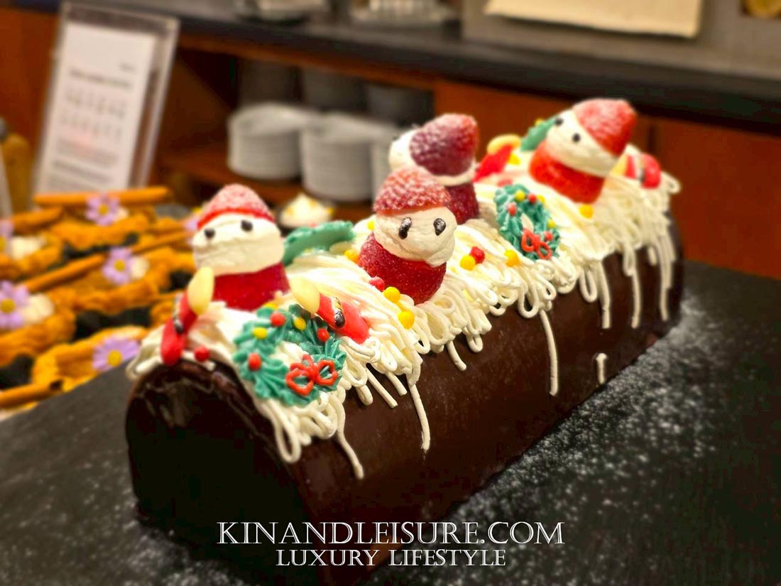 Chocolate cake มาในรูปแบบเหมือนท่อนไม้ Yule log cake ที่เจอกันได้แค่ช่วงเทศกาลนี้ ประดับด้วยหิมะสีขาวกับเหล่าสโนว์แมนแต่งตัวเต็มยศ ชิ้นนี้รสชาติความเข้มข้นของช็อกโกแลตนั้นออกจะได้ใจ กับเนื้อเค้กที่ทำด้วยการเอาเม็ดช็อกโกแลตมาอุ่นร้อนผสมกับแป้งเป็นส่วนสำคัญที่ทำให้เนื้อหนืดขึ้นด้วย
