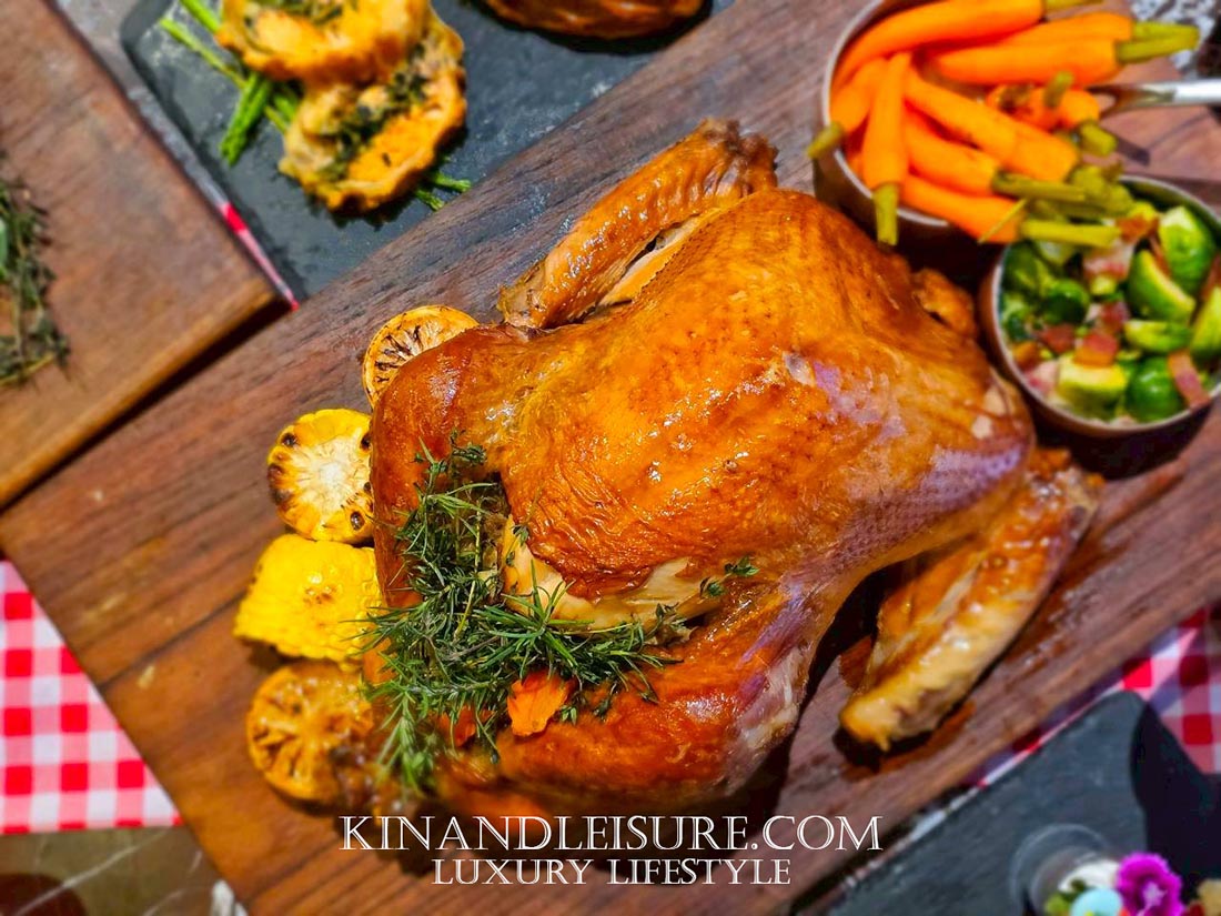 ไก่งวง สัญลักษณ์ของเทศกาลที่จะขาดเมนูนี้ไปไม่ได้เลย ไก่งวงอบที่ดูสามัญ homemade ของครอบครัวฝรั่ง(ที่เห็นจากในหนัง) จะต้องอบในครัวของบ้านเพื่อมาทานกันทั้งครอบครัวอย่างพร้อมหน้าพร้อมตากันในช่วงเทศกาลนี้ ก็มีมาให้ทานกันอย่างหนำใจ สามารถบอกได้เลยว่าจะรับประมาณกี่ชิ้น พร้อมกับราดซอสเบอร์รี่เข้มข้น