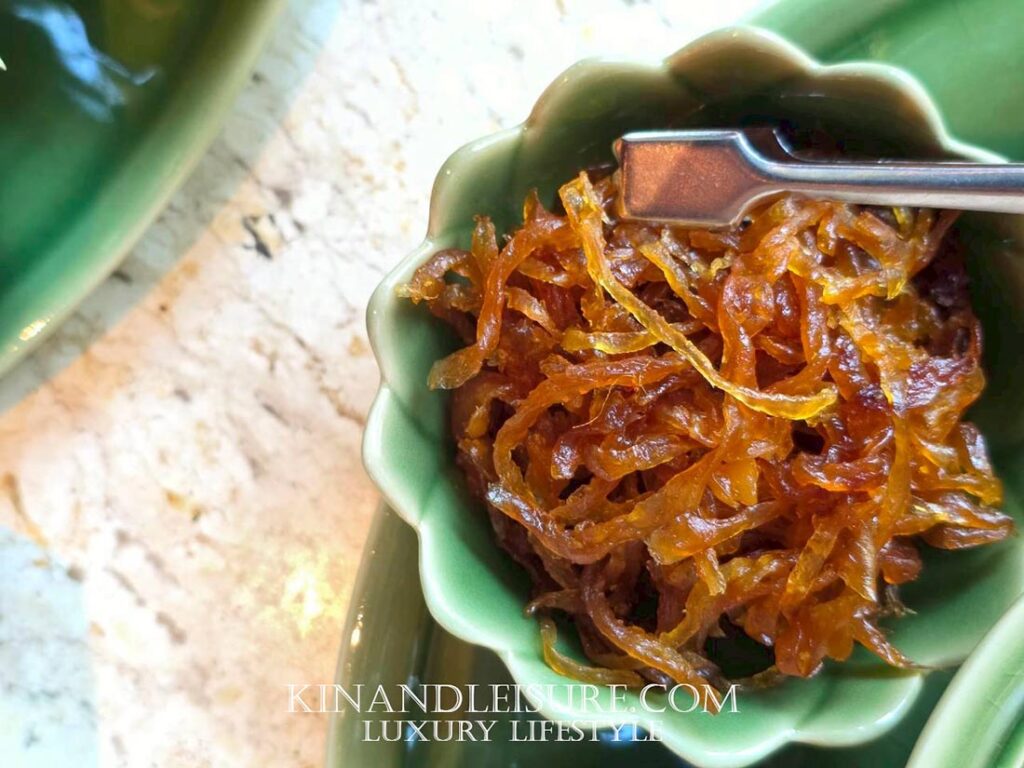ในสำรับนี้ ไชโป๊วหวานถูกจัดมาในถ้วยเล็กแยกจากชิ้นอื่น ทำให้มองเห็นเส้นสีน้ำตาลทองของไชโป๊วอย่างชัด รสของมันทำหน้าที่เป็น “ฐานเสียง” ให้สำรับ เพราะไม่ใช่เครื่องที่ฉูดฉาด แต่เป็นเครื่องที่ช่วยประคองจังหวะการกิน