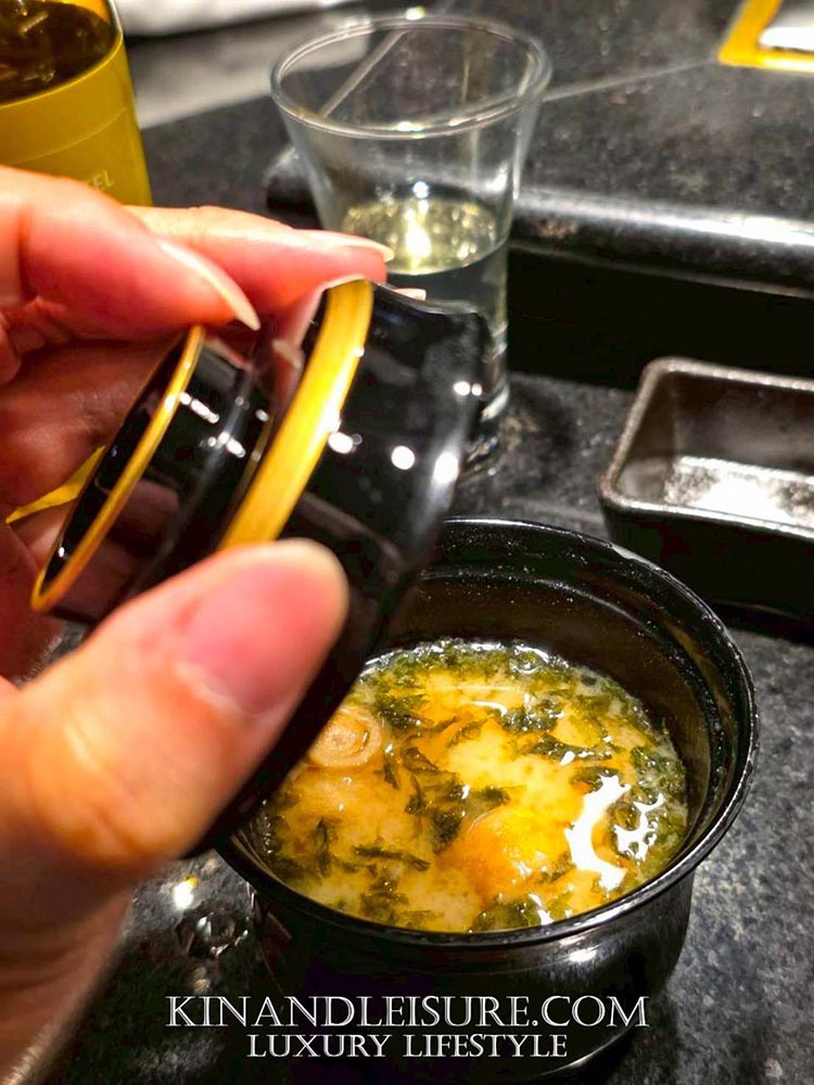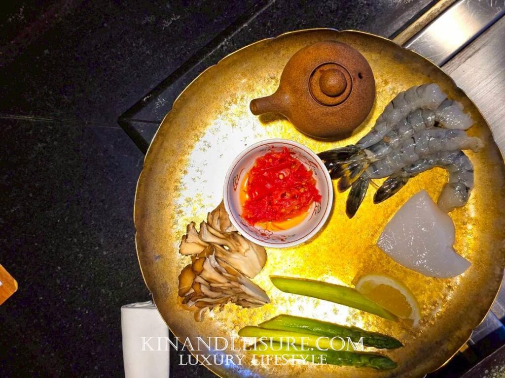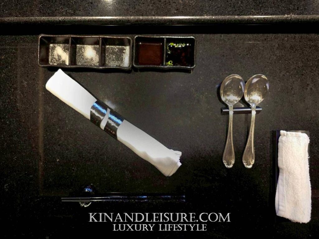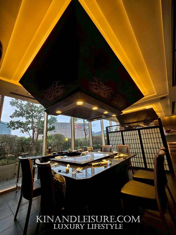 ไฮไลท์คือเคาน์เตอร์หินแกรนิตสีเข้มยาวเหยียดที่โอบล้อมเตาเหล็กเงาวับ สะท้อนถึงความสะอาดสะอ้านและความเป็นมืออาชีพ การจัดที่นั่งเน้นความเป็นส่วนตัวและระยะห่างที่พอดี ทำให้เราได้จดจ่อกับท่วงท่าของเชฟที่สงบนิ่งแต่เฉียบคม ราวกับกำลังชมการร่ายรำที่ผ่านการฝึกฝนมาอย่างหนัก เป็นบรรยากาศแบบ Luxury ที่ไม่ต้องตะโกนแต่สัมผัสได้ถึงความแพงในทุกรายละเอียด