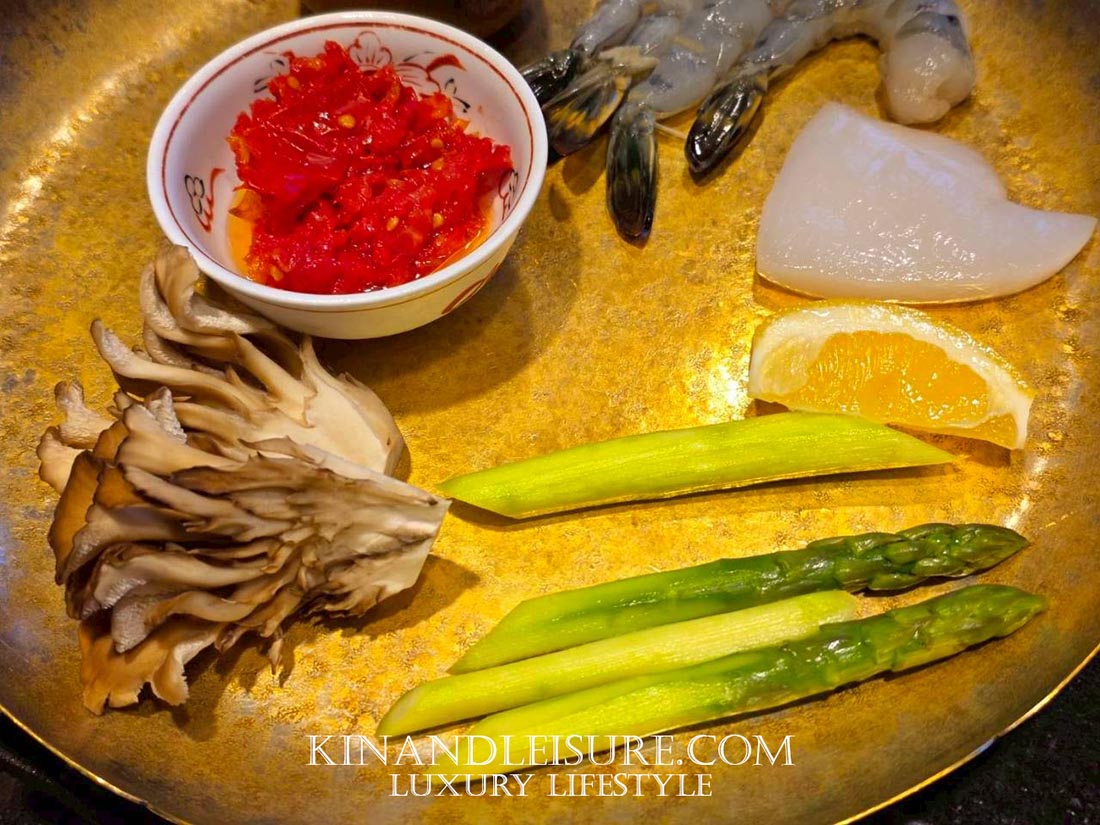 - ถั่วลันเตาหวาน: สีเขียวสดใส ย่างเร็วๆ จนกรอบหวานธรรมชาติระเบิดออกมาผักเหล่านี้มาจากฟาร์ม Senshu โดยตรง ความสดของมันช่วยชูรสชาติของเนื้อวากิวให้โดดเด่นขึ้นไปอีกระดับ