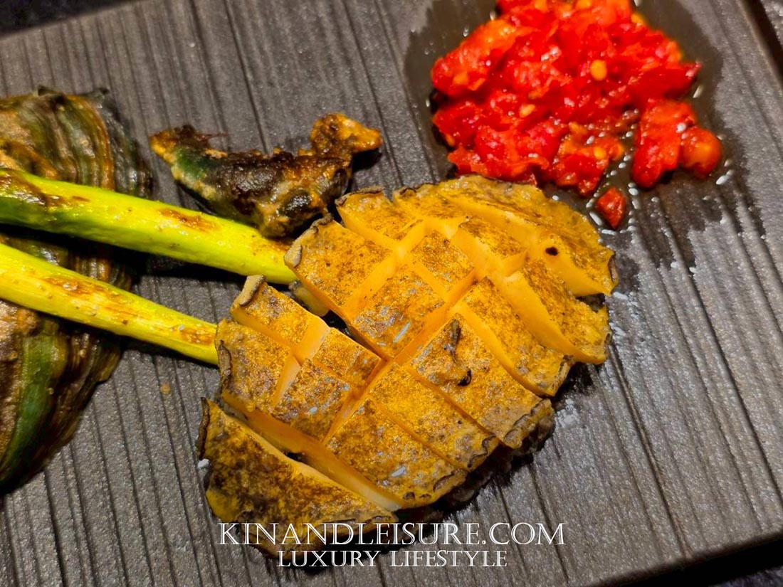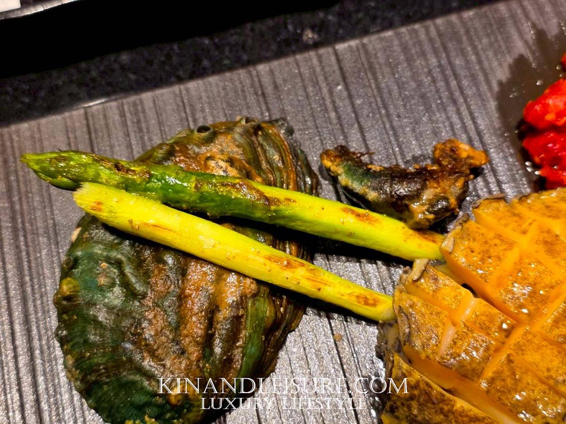 เมื่อสุกได้ที่เชฟจะผัดกับเนยกระเทียมจนหอมฟุ้ง เสิร์ฟคู่กับหน่อไม้ฝรั่งย่างและมะเขือเทศสับรสเปรี้ยวหวานเพื่อตัดเลี่ยน กลิ่นหอมของท้องทะเล (Sea Breeze) ชัดเจนมาก รสชาติหวานตามธรรมชาติของเป๋าฮื้อสดนั้นเหนือคำบรรยายจริงๆ ครับ