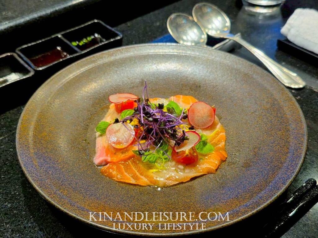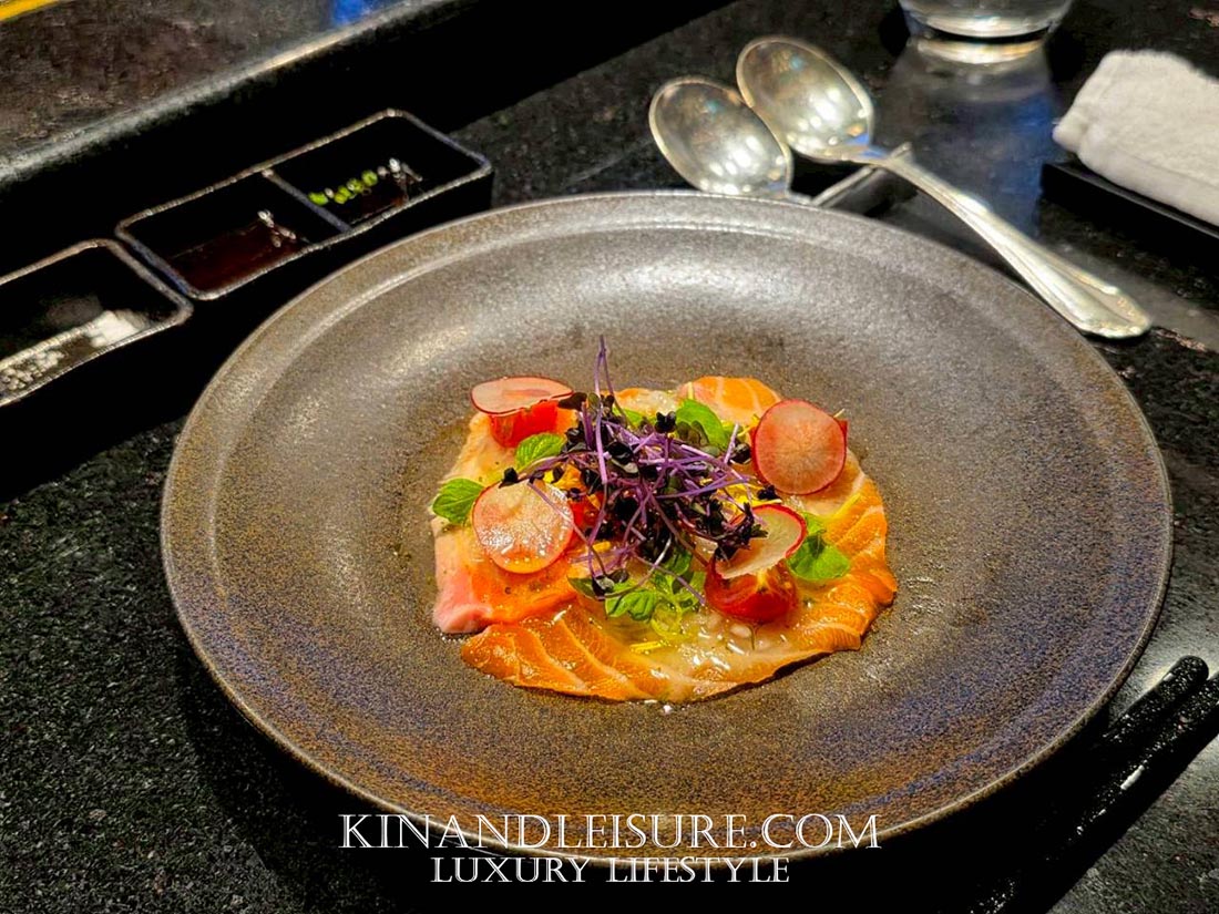 1. Appetizers: Salmon Carpaccio with Senshu Vegetables