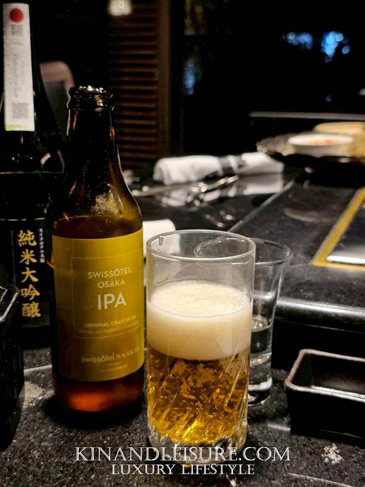 - Minami Signature Craft Beer: เป็นเบียร์ที่กลั่นจากโรงกลั่นในแถบ Kamigata (พื้นที่ประวัติศาสตร์รอบๆ โอซาก้า) ซึ่งทางโรงกลั่นทำขึ้นแบบ Exclusive เฉพาะให้กับ Swissôtel Nankai Osaka เท่านั้น ตัวเบียร์มีบอดี้ที่นุ่มนวล กลิ่นฮอปส์ไม่โดดจนเกินไป แต่มีรสสัมผัสของมอลต์ที่หวานปลายๆ ช่วยล้างความมันของเนื้อได้ดีเยี่ยม