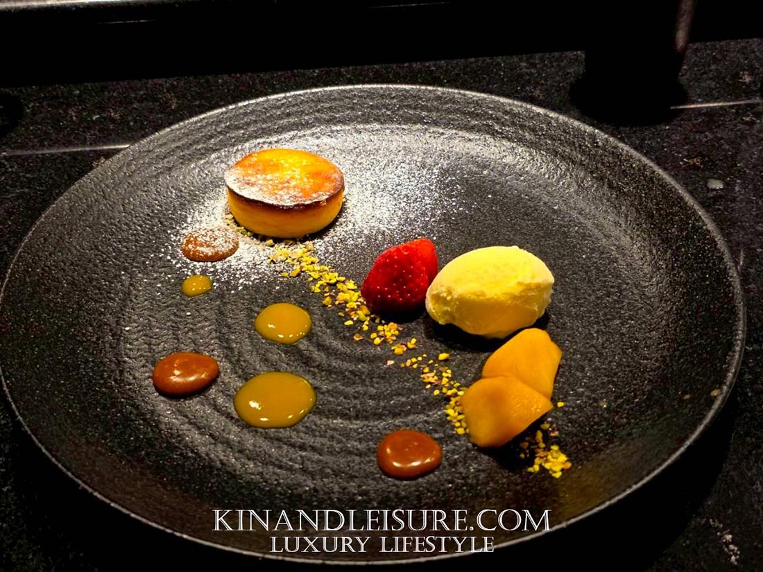 8. Seasonal Fruit Flambé & Cheesecake with Wagyu Fat Caramel