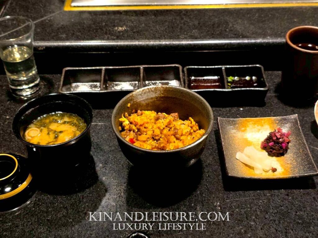 ข้าวทุกเม็ดถูกเคลือบด้วยมันเนื้อและกลิ่นกระเทียมที่ผัดจนเข้าเนื้อ เสิร์ฟพร้อมซุปมิโซะร้อนๆ และผักดองญี่ปุ่นที่ใส่ Shiso เพื่อตัดเลี่ยน เป็นการจบมื้อหลักที่อยู่ท้องและเปี่ยมไปด้วยความสุข