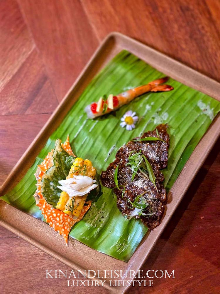 จานนี้มิใช่เพียงออร์เดิร์ฟ หากแต่คือ “บทกวีคำเล็ก” ที่รังสรรค์ขึ้นจากตำนานอาหารอีสานอันลือลั่น ได้แก่ ลาบ ตำ และก้อย การนำเสนอในรูปแบบจานคำ (One-bite Appetizers) คือการยกระดับอาหารพื้นบ้านสู่เวที Fine Dining ได้อย่างสง่างาม