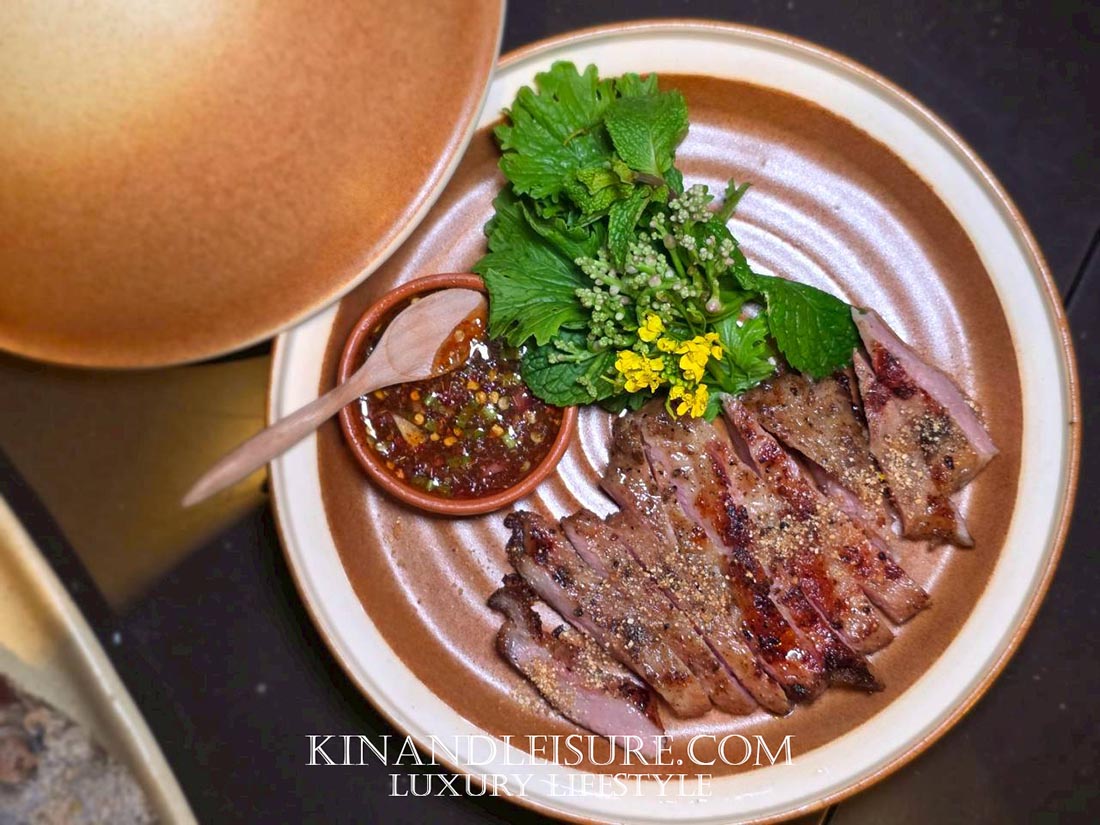รสชาติของหมูที่หวานธรรมชาติผสานกับความหอมของควันฟืนทำให้จานนี้เป็นนิยามใหม่ของคอหมูย่างที่ไม่เหมือนที่ไหนในโลก