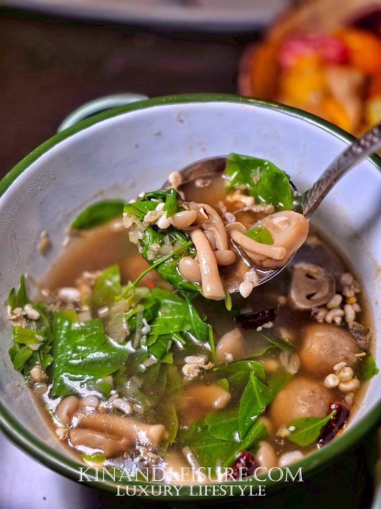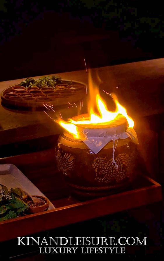 เป็นมิติของรสชาติที่สลับซับซ้อนระหว่างความเผ็ดร้อนของน้ำแกงและความมันนวลของไข่มดแดง เมนูนี้ปรุงในภาชนะเคลือบแบบย้อนยุคที่ให้ความรู้สึกอบอุ่นเหมือนทานอาหารรสมือแม่ในแบบฉบับที่ยกระดับวัตถุดิบพื้นบ้านให้กลายเป็นจานหรู