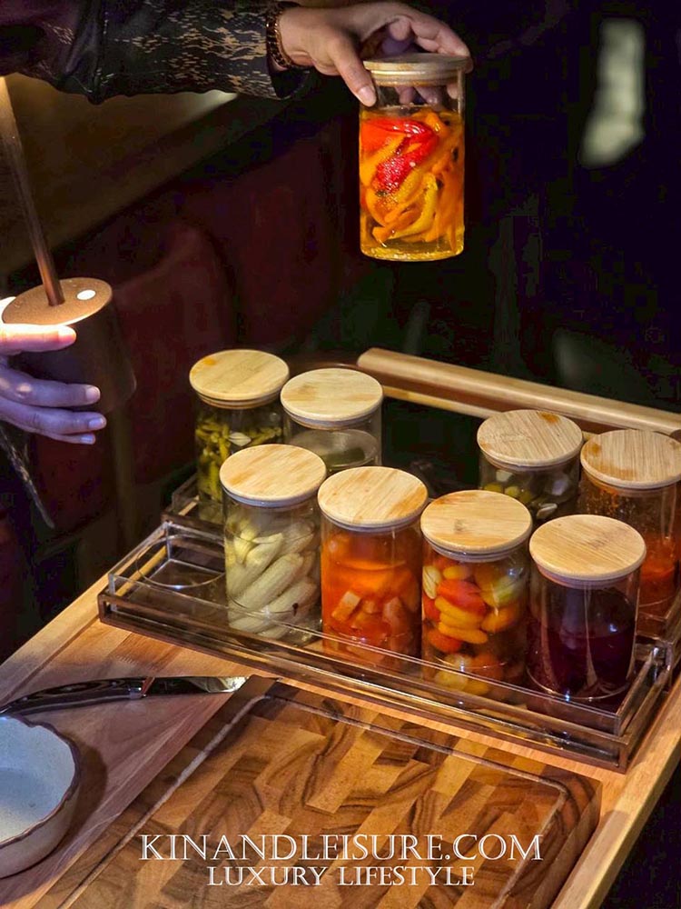 ไปจนถึง บีทรูทดองกับมะขาม และ กระเจี๊ยบดองสไตล์ภาคใต้ ผักแต่ละชนิดถูกดองด้วยเทคนิคที่แตกต่างกันเพื่อดึงรสชาติเฉพาะตัวออกมา เป็นเครื่องเคียงที่ช่วยตัดเลี่ยนจากเมนูย่างและเพิ่มมิติ “Probiotic” ที่ดีต่อสุขภาพให้กับมื้ออาหารได้อย่างชาญฉลาด