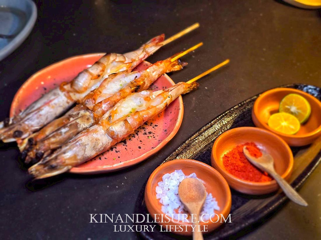 8. กุ้งแชบ้วยย่างเกลือชมพูและส้มซ่า (Goong Chae Buay Skewer) (290฿)