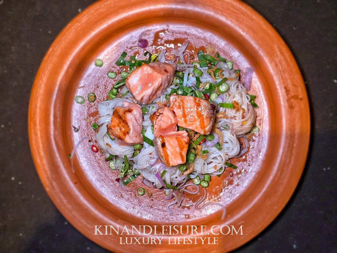 1. ยำขนมจีนแซลมอนย่าง (Yum Khanom Jeen Salmon Yang) (490฿)