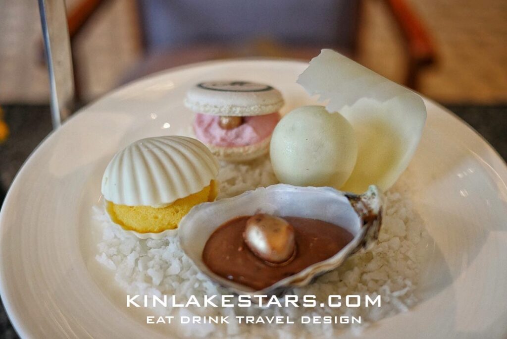 อันโตนิโอ หยาง หัวหน้าพ่อครัวขนมสุโขทัยกรุงเทพฯ The Sukhothai Bangkok และทีมงานมากความสามารถภูมิใจเสนอชุดน้ำชายามบ่ายที่สวยงามซึ่งประดิษฐ์ขึ้นตามธีม “Legacy of Pearls” ในชุดมีทั้งอาหารคาวและของหวานที่หลากหลาย โดยทุกชิ้นได้แรงบันดาลใจและนำเสนอออกมาถึงรูปทรงของหอยและไข่มุก เช่น หอยนางรมลวก ริคอตต้าทรัฟเฟิลพัฟเพสตรี้ มูสตับไก่กับไข่มุกสีส้ม และอื่นๆ อีกมากมาย ชุดน้ำชายามบ่ายนี้จะเสิร์ฟพร้อมกับ SARO, The Oriental Senses of Premium Organic Tea