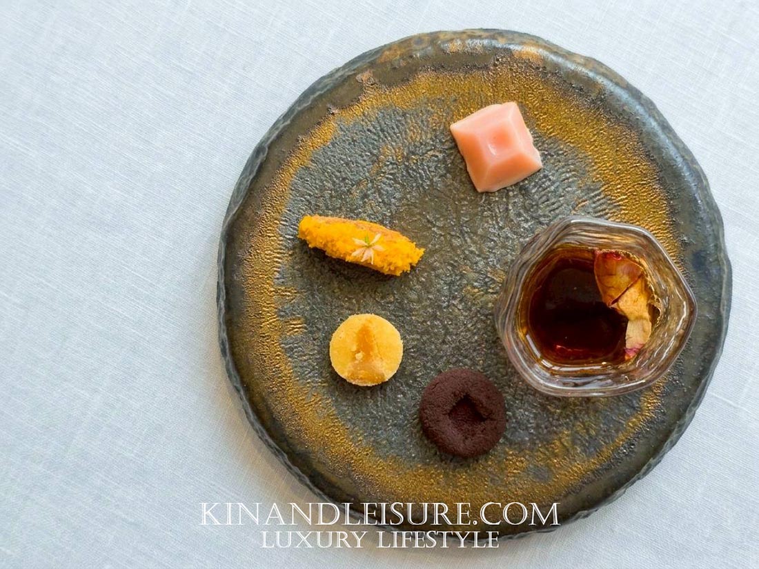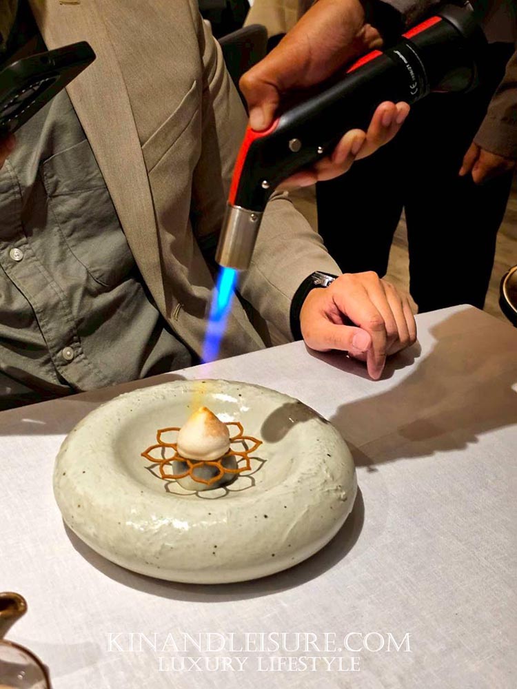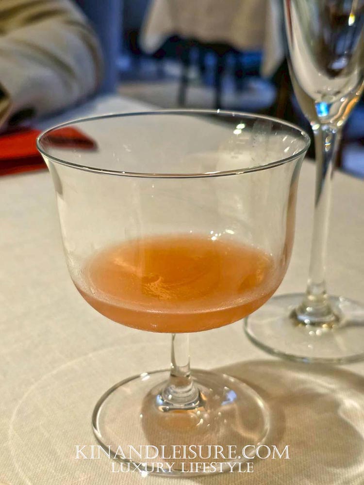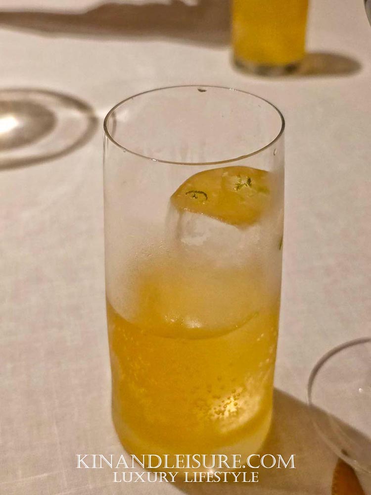 ก่อนจะเริ่มต้นคอร์สแรก บูมได้รับเครื่องดื่มต้อนรับที่ชื่อว่า “Le Bua” รสชาติหอมเย็นชื่นใจ ช่วยปรับสมดุลและปลุกประสาทสัมผัสได้ดีเยี่ยม ทำจากเม็ดมะม่วงหินมพาน