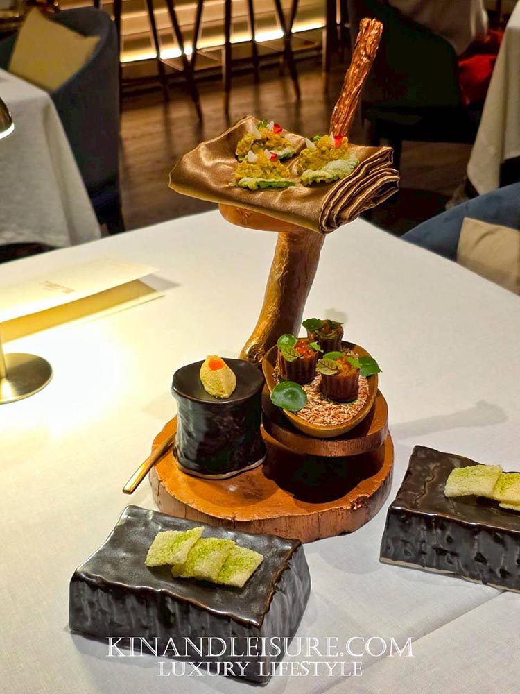 ตามมาด้วย Amuse-bouche 3 คำพิเศษ ที่จัดวางมาอย่างสวยงาม: