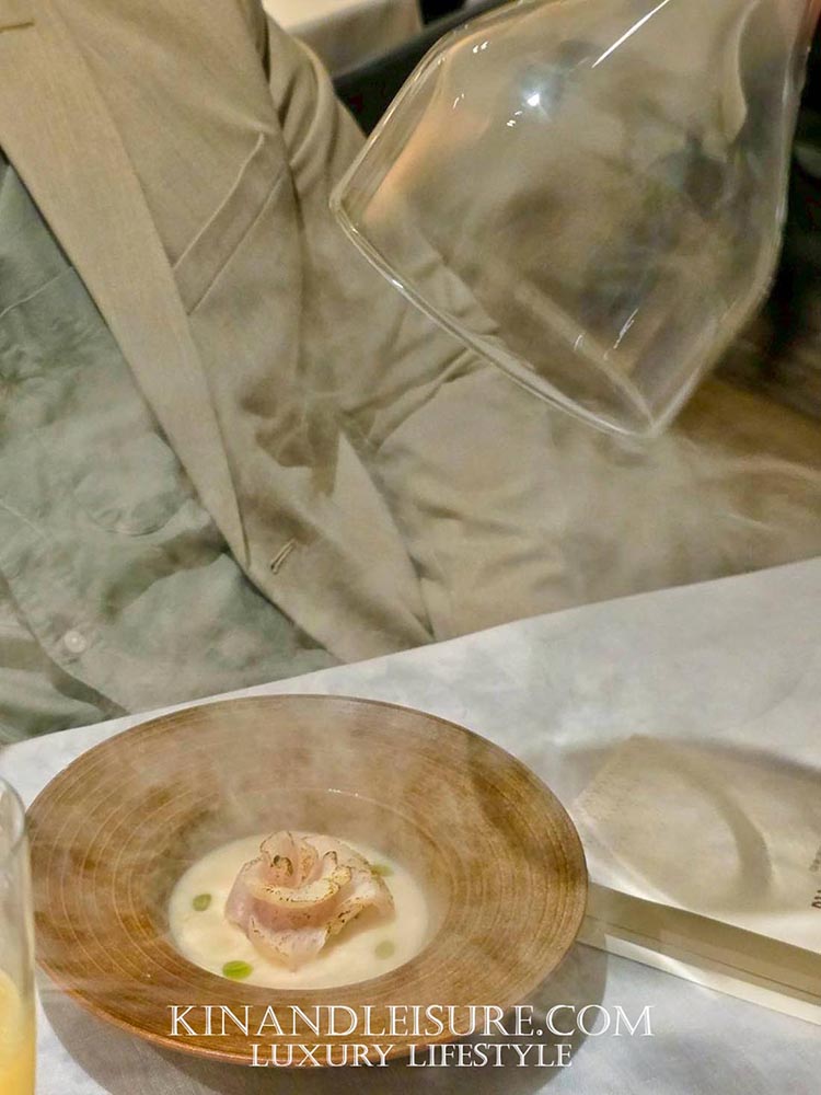 เจ้าหน้าทีศาลไคฟงเอ้ยเจ้าหน้าที่ร้านก็จะเปิดแก้ว ทำเอากลิ่นรมควันที่หอมหวลชวนหิวและเคลิบเคลิ้มสุดๆ การจัดจานมาในถ้วยเซรามิกสั่งทำพิเศษ สีของซุปขาวนวลตัดกับเนื้อปลาดูแพงและพรีเมียมมาก