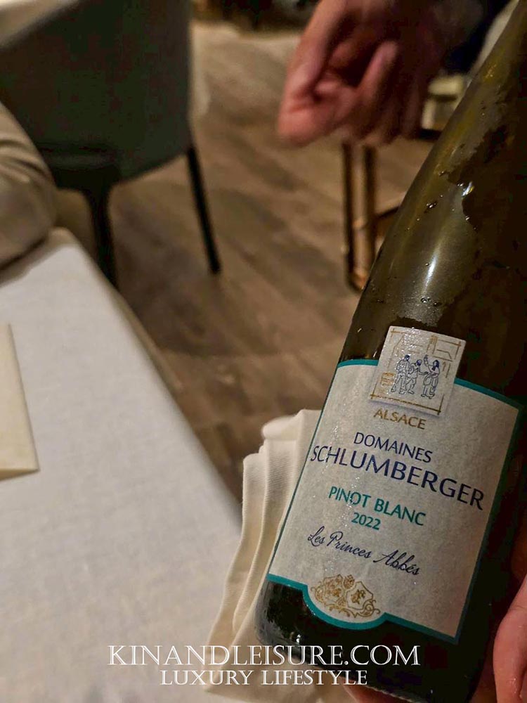 บูมทานคู่กับไวน์ขาว Pinot Blanc “Les Princes Abbés” จากแคว้น Alsace ที่มีความเปรี้ยว (Acidity) กำลังดี มีกลิ่นแอปเปิ้ลเขียวและดอกไม้สีขาว ช่วยส่งเสริมความสดชื่นของจานนี้ได้อย่างแม่นยำและสะอาดสดใสมากครับ