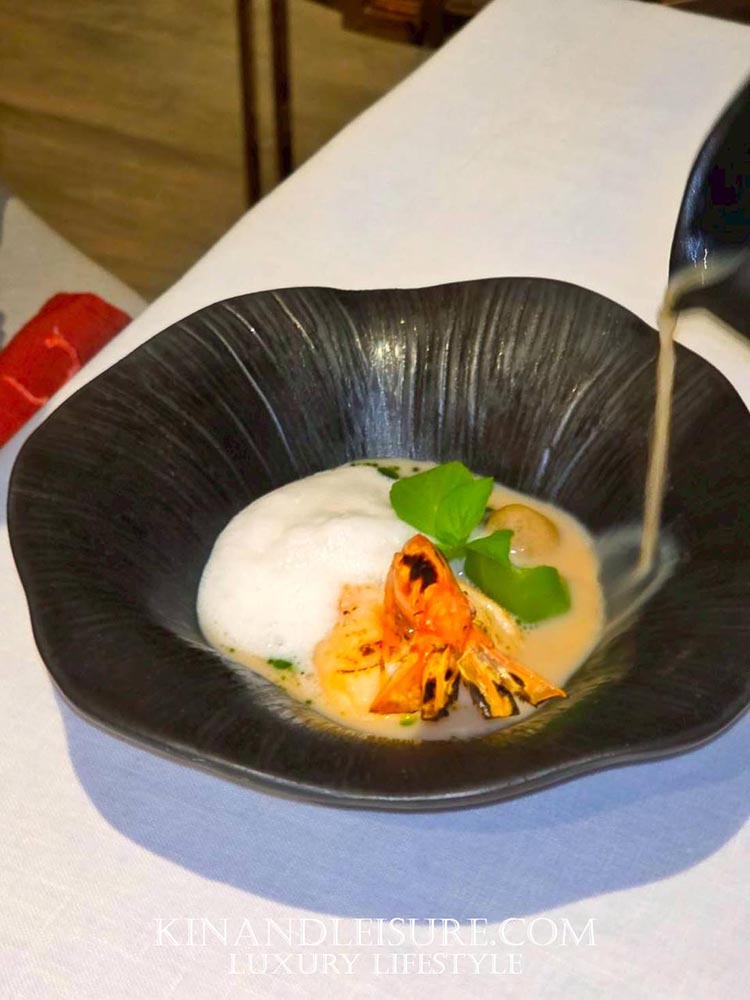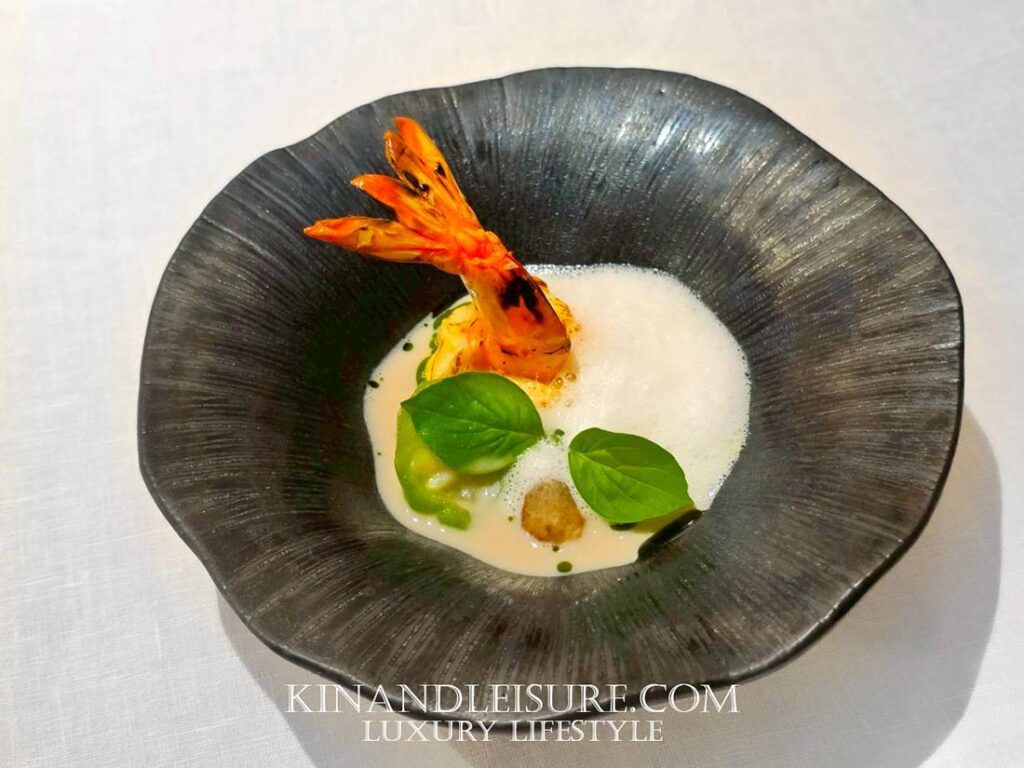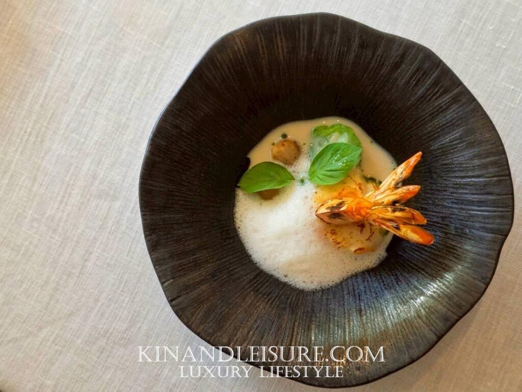 นอกจากความโบราณแล้ว เชฟยังใส่เทคนิคสมัยใหม่อย่าง Lemon Basil Foam (โฟมใบแมงลัก) ลงไปด้านบน ซึ่งช่วยดึงกลิ่นอายของใบแมงลักให้เด่นชัดขึ้นในทุกคำที่ตักทาน รสสัมผัสมีความเผ็ดร้อนจากพริกไทยช่วยกระตุ้นการไหลเวียน แต่ถูกเบรคด้วยความละมุนของโฟมสมัยใหม่ เป็นการผสมผสานความเก่าและความใหม่เข้าด้วยกันได้อย่างไร้ที่ติ ใครที่ชอบรสสัมผัสที่ซับซ้อนแต่ยังคงความอุ่นใจแบบรสไทยดั้งเดิม ต้องหลงรักจานนี้แน่นอนครับ