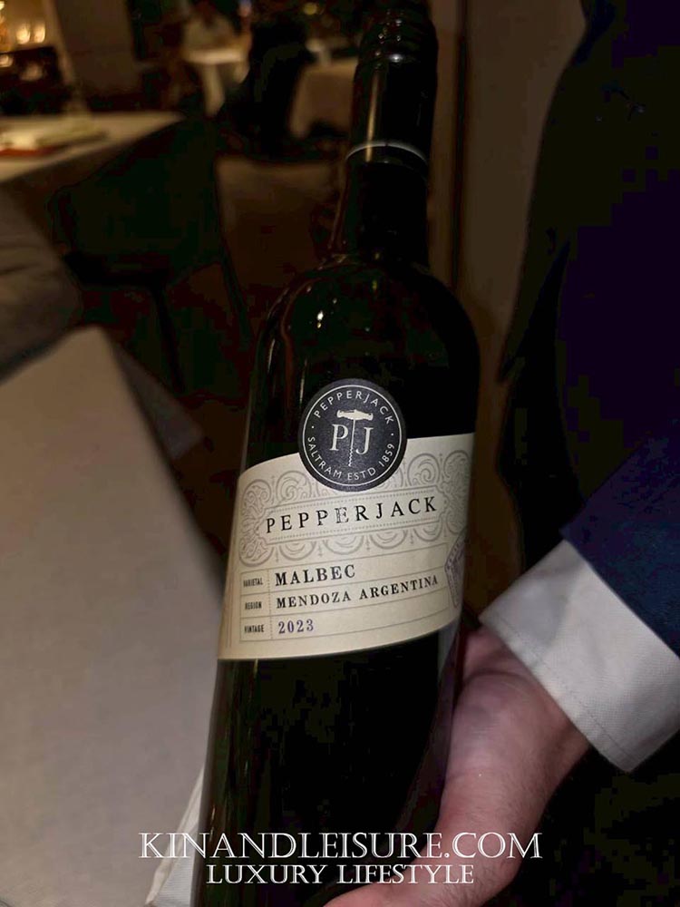 ในส่วนของการเพิ่มมิติด้วยไวน์ (Wine Pairing) ทางร้านเลือกจับคู่กับ Pepperjack Malbec 2023 จากเมืองเมนโดซา (Mendoza) ประเทศอาร์เจนตินา ไวน์ตัวนี้ถูกสร้างมาเพื่อจานเนื้อที่มีรสชาติเข้มข้นอย่างพะแนงโดยเฉพาะ ด้วยคาแรกเตอร์ขององุ่น Malbec 100% ที่ให้สีม่วงเข้มสวยงาม มีกลิ่นหอมของดอกไวโอเล็ตและผลไม้ตระกูลเบอร์รี่สีน้ำเงินอย่างบลูเบอร์รี่และบอยเซนเบอร์รี่ที่ชัดเจน ผสานกับกลิ่นมอคค่าและเครื่องเทศอ่อนๆ
