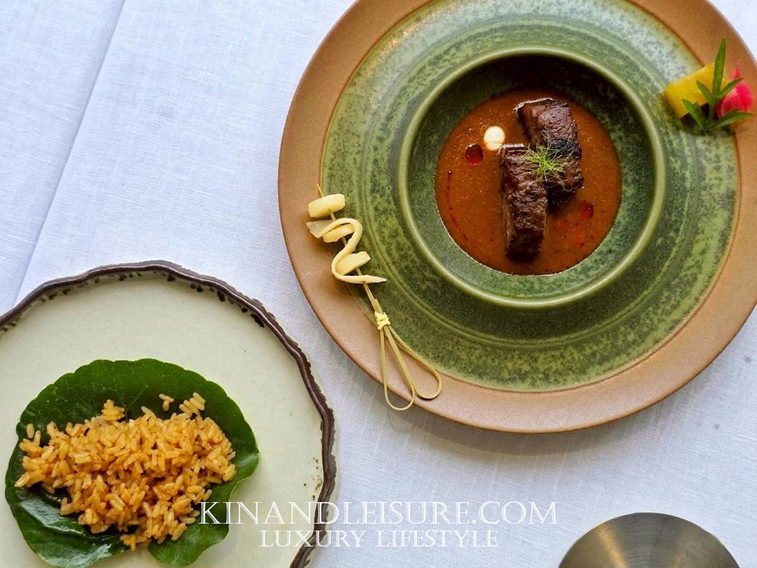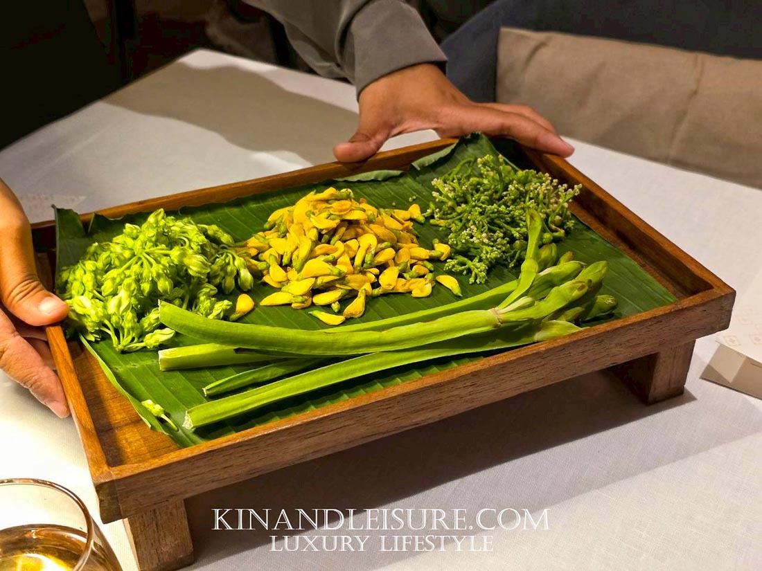 มื้อนี้รังสรรค์โดย เชฟภูมิ-จักรภูมิ บุณยาคม ผู้สืบทอดมรดกอาหาร (Heritage Recipes) จากบ้านบุญยาคมและสายสัมพันธ์ของวังเทวพรหม เชฟภูมิได้นำเทคนิคสมัยใหม่มาใช้ในการตีความอาหารไทยโบราณ (Reimagined) จนกลายเป็นสไตล์ Modern Royal Thai Cuisine ที่ได้รับรางวัล Thai Fine Dining Award จากการท่องเที่ยวแห่งประเทศไทยอีกด้วย ความใส่ใจของที่นี่ยังรวมไปถึงเครื่องปั้นดินเผาจากลำปางที่สั่งทำพิเศษเพื่อให้จานแต่ละใบเล่าเรื่องราวที่สอดรับกับอาหารได้อย่างลงตัวที่สุดครับ