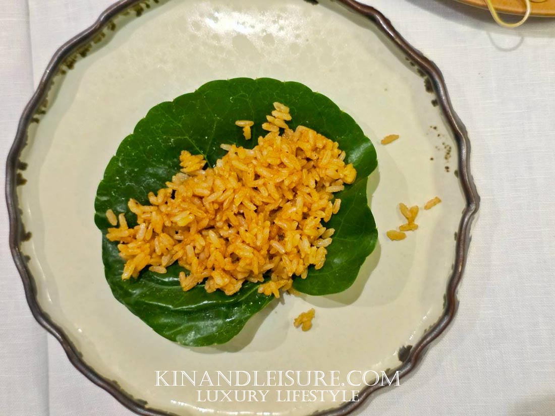 ความพิเศษที่ไม่พูดถึงไม่ได้คือองค์ประกอบของ “ข้าว” ที่เชฟภูมิเลือกใช้ ข้าวผกาอัมปึล (ข้าวดอกมะขาม) ข้าวพันธุ์พื้นเมืองจากจังหวัดสุรินทร์ที่มีความหนึบและหอมเป็นเอกลักษณ์ เสริมมิติด้วย เมล็ดกะบก (Kra-Bok) ธัญพืชป่าหาทานยากที่นำมาคั่วจนหอมและกรุบกรอบ ให้รสสัมผัสที่มันเหมือนถั่วแต่มีความลุ่มลึกกว่า