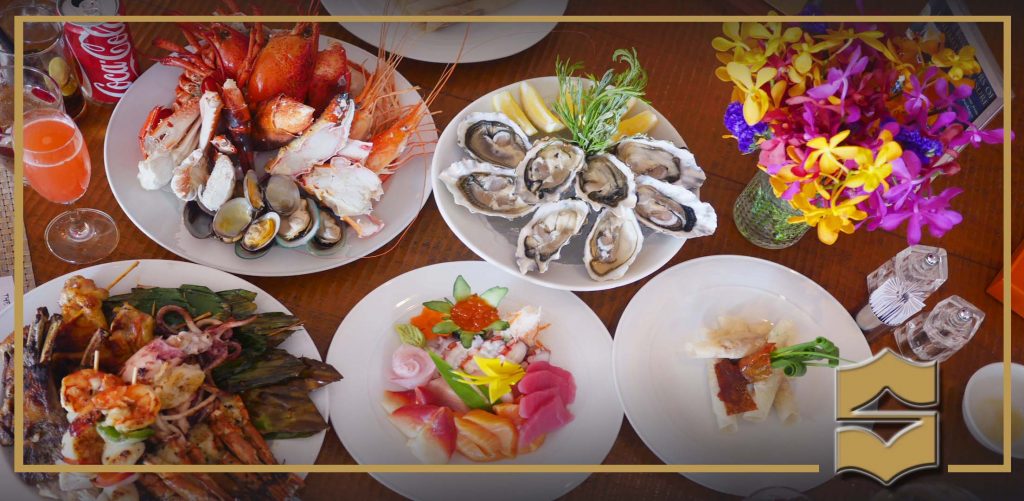กุ้งล็อบสเตอร์จากรัฐเมนน์ ขาปูยักษ์ อลาสก้า ปูทะเลก้ามโต หอยนางรมสดจากสามทวีปของมหาสมุทรแปซิฟิกทั้งยุโรป ออสเตรเลียและอเมริกา กุ้ง และหอยกาบ สดๆ